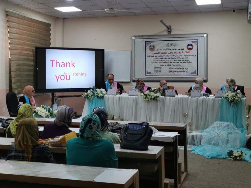 مناقشة رسالة الماجستير للطالبة إسراء رافد محمود في فرع علوم طب الأسنان الأساسية