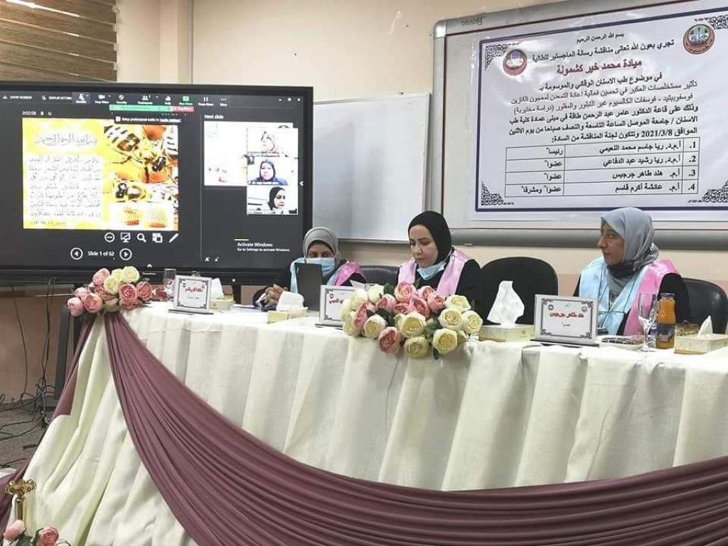 مناقشة رسالة الماجستير للطالبة ميادة محمد خير شيت في موضوع طب الأسنان الوقائي
