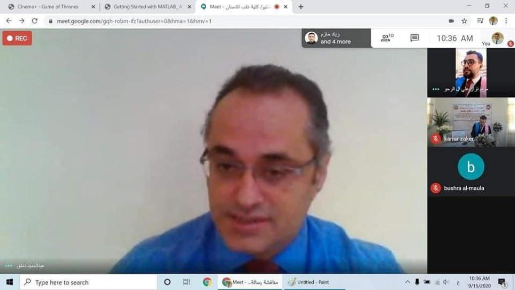 تمت على بركة الله اليوم الثلاثاء الموافق ل ١٥ / أيلول / ٢٠٢٠ مناقشة رسالة الماجستير للطالب كرار علي زكر و الموسومة ب:( النشوء العظمي من الهيدروكسي ابتايت و الفوسفات الثلاثي الكالسيوم الثنائي الطور النانوي البنية كبديل للعظام)