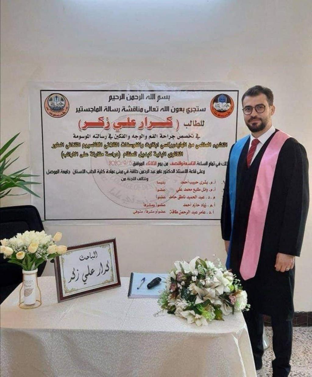 مناقشة رسالة الماجستير للطالب كرار علي زكر / في جراحة الفم و الوجه والفكين.
