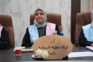 ترأس لجنة المناقشة الأستاذ الدكتور (نوال عطية خلف) وبعضوية كل من الأستاذ (وئام محمد عمر) والمدرس الدكتور (هبة فائز حمودات) وبإشراف وعضوية الأستاذ المساعد (فنار تركي عبد الحميد) والاستاذ المساعد الدكتور (سهاد موفق حمدون) .
