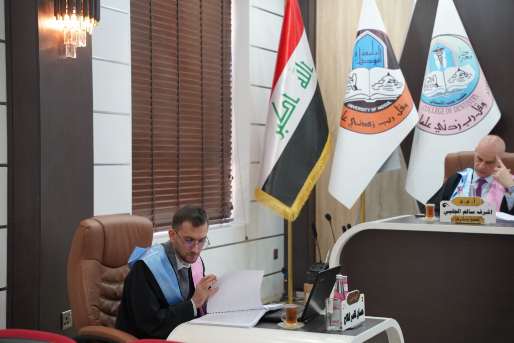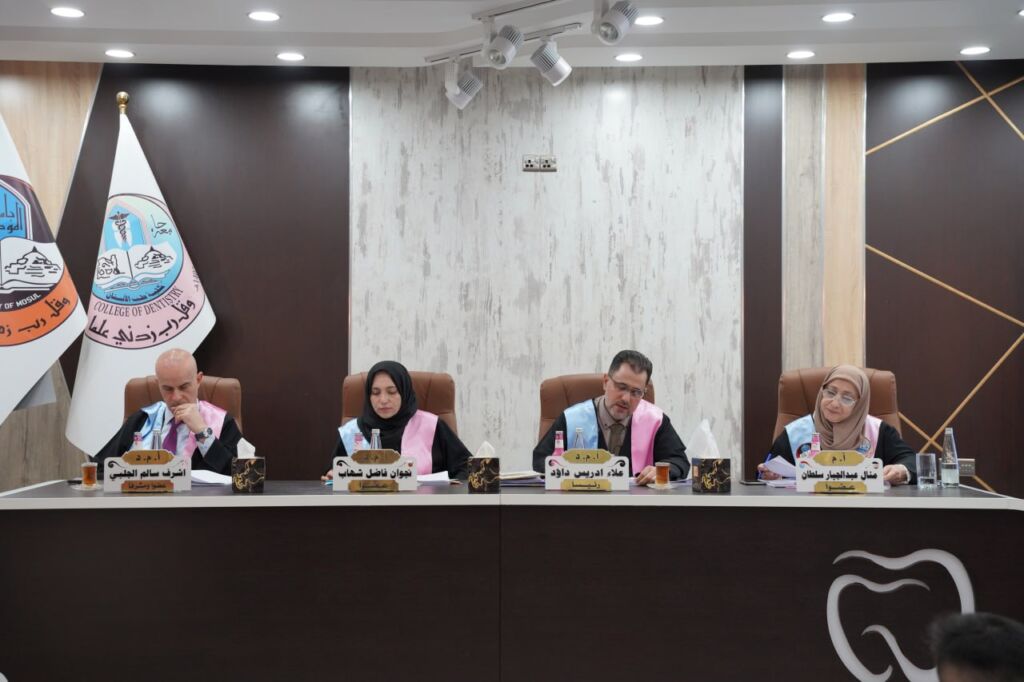 جرت يوم الاحد الموافق 29 / حزيران /٢٠٢٥ في فرع علاج الأسنان التحفظي / كلية طب الأسنان/ جامعة الموصل مناقشة رسالة الماجستير الموسومة: