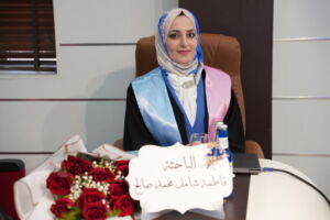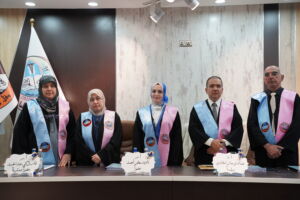 ترأس لجنة المناقشة الأستاذ الدكتور (عماد فرحان علي) وبعضوية كل من الأستاذ المساعد الدكتور (علي مؤيد رشيد) والاستاذ المساعد الدكتورة (نادية مظفر احمد) وبإشراف وعضوية الأستاذ المساعد الدكتورة (فنار تركي عبدالحميد).