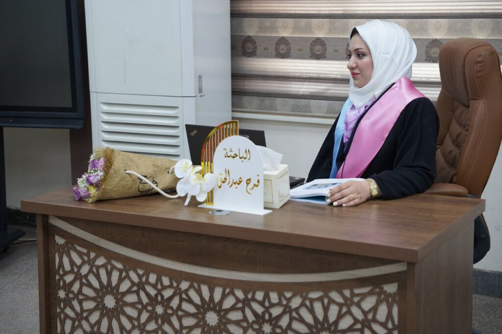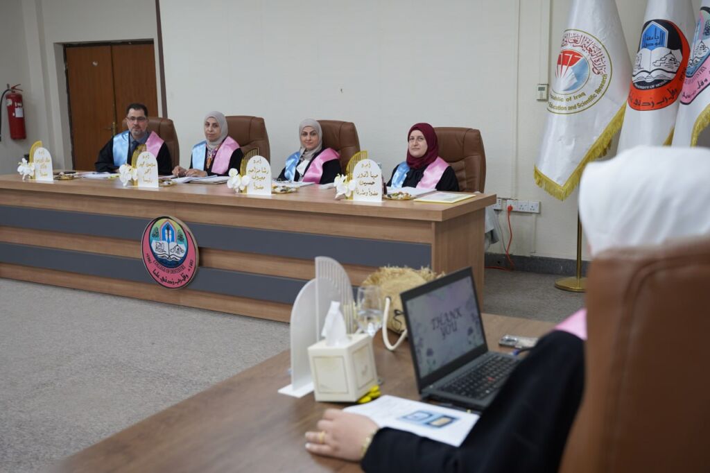 ترأس لجنة المناقشة الأستاذ المساعد الدكتور سوسن حميد احمد ، وعضوية كل من الأستاذ المساعد الدكتور علاء ادريس داؤد، و الأستاذ المساعد الدكتور رشا مزاحم معيوف، وبإشراف وعضوية الأستاذ المساعد الدكتور مها انور حسين.