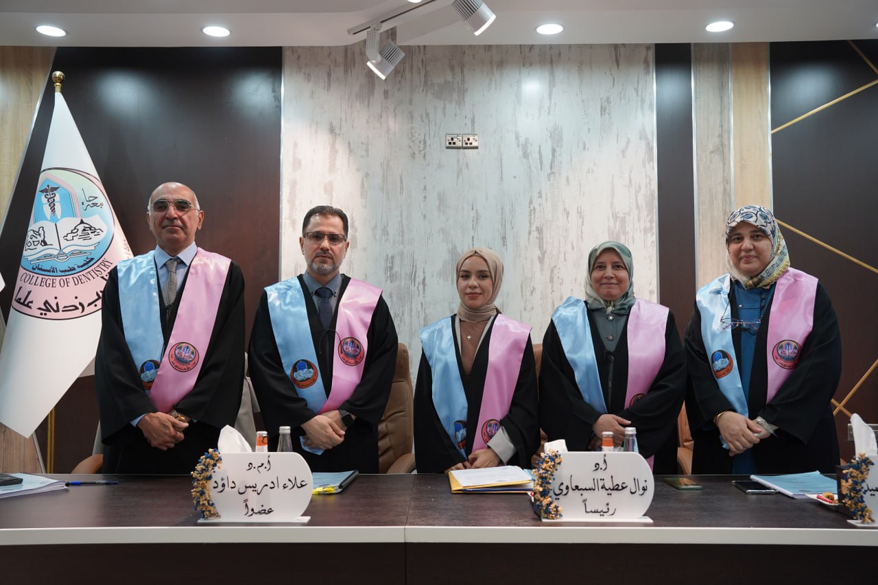 جرت يوم الإثنين الموافق ٤ / آب /٢٠٢٥ في فرع علاج الأسنان التحفظي / كلية طب الأسنان/ جامعة الموصل مناقشة رسالة الماجستير الموسومة: