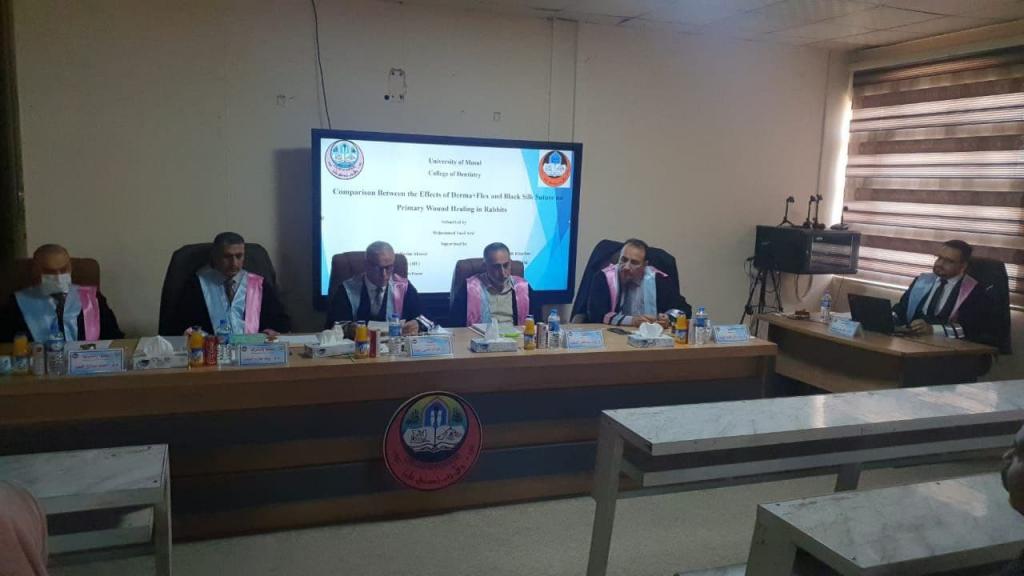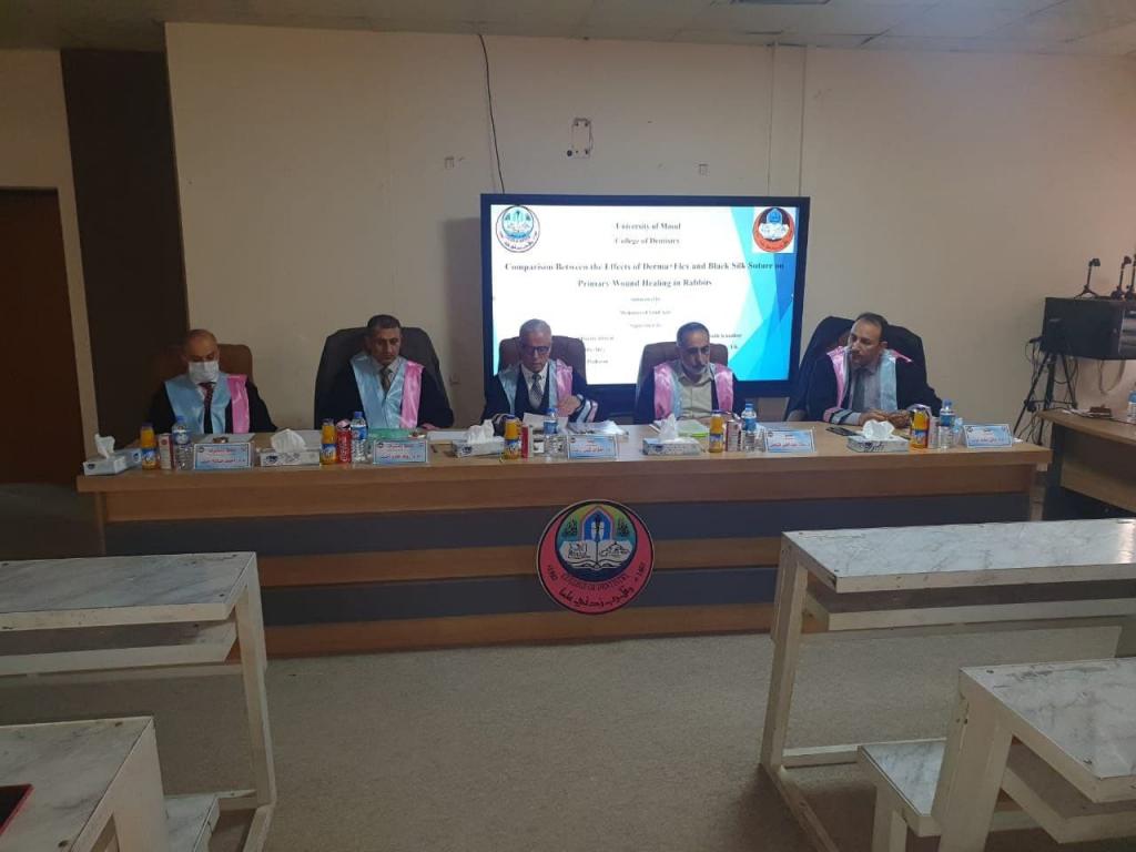 أجريت اليوم الخميس الموافق ل ٢٥/ تشرين الثاني/ ٢٠٢١ مناقشة رسالة الماجستير الموسومة ب( مقارنة بين تأثيرات ديرما+ فليكس و خياطة الحرير الأسود على التئام الجروح الأولية في الأرانب).