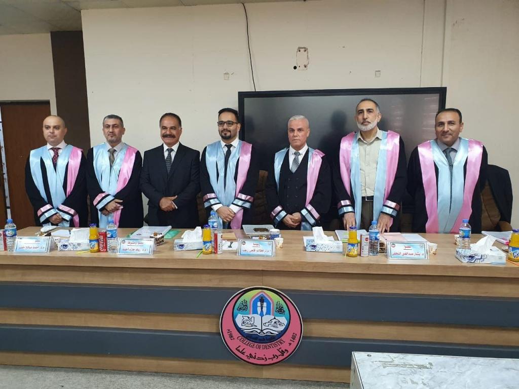 ترأس لجنة المناقشة أ.م. د. عطا الله فتحي رجب و بعضوية كل من أ.م. وائل طليع الوتار و الطبيب الاستشاري د. بشار عبد الغني النجفي، و بعضوية و إشراف كل من أ.م. د. زياد حازم أحمد و م. د. أحمد صالح خضر.