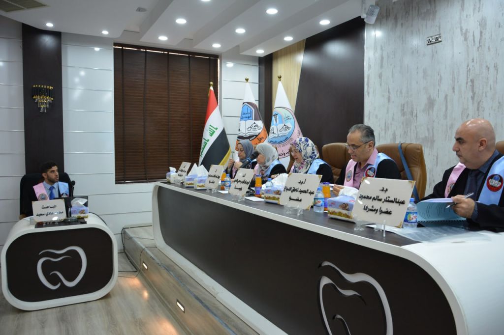 جرت يوم الثلاثاء ٨/آب/٢٠٢٣ في فرع الأطفال والتقويم وطب الأسنان الوقائي في كلية طب الأسنان / جامعة الموصل مناقشة رسالة الماجستير الموسومة