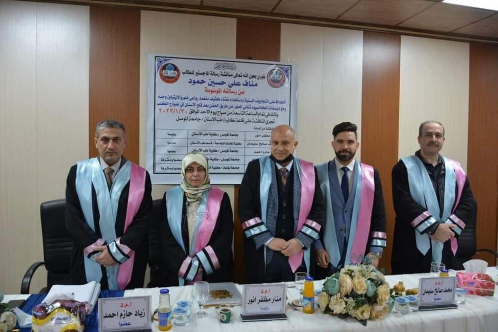 ترأس لجنة المناقشة الاستاذ المساعد الدكتورة منار مظفر انور و بعضوية كل من الأستاذ المساعد الدكتور زياد حازم احمد و الأستاذ مساعد الدكتور محمد صالح سليمان/كلية المعارف الجامعة وبإشراف وعضوية الأستاذ الدكتور عمر وليد ماجد وبأشراف وعضوية الأستاذ المساعد الدكتور اريج كامل مهدي/جامعة بغداد.