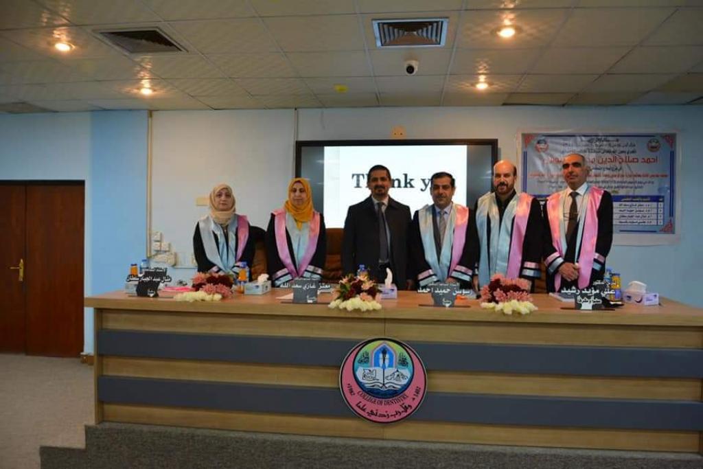 جرت اليوم الخميس الموافق ١٣/كانون الثاني/٢٠٢٢ في فرع علاج الأسنان التحفظي/كلية طب الأسنان/جامعة الموصل مناقشة رسالة الماجستير الموسومة