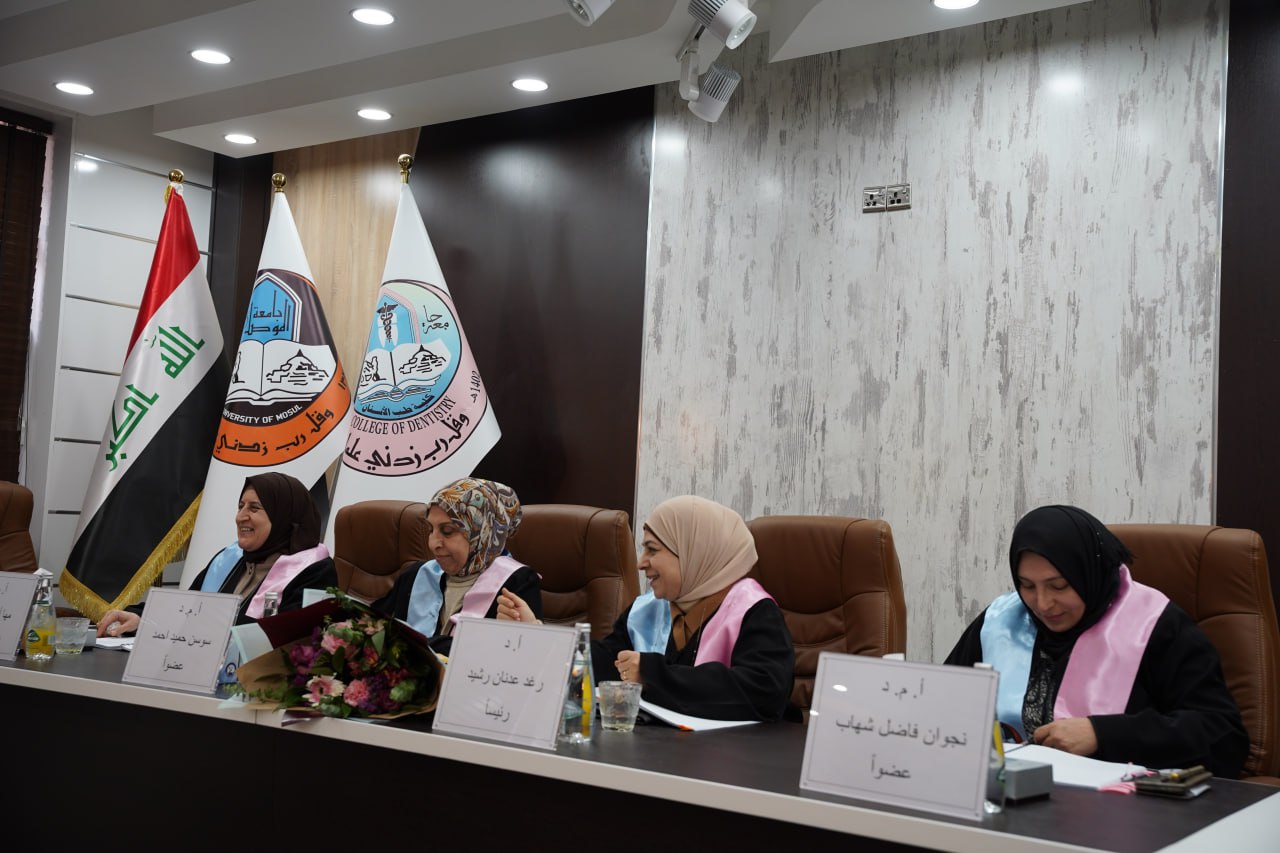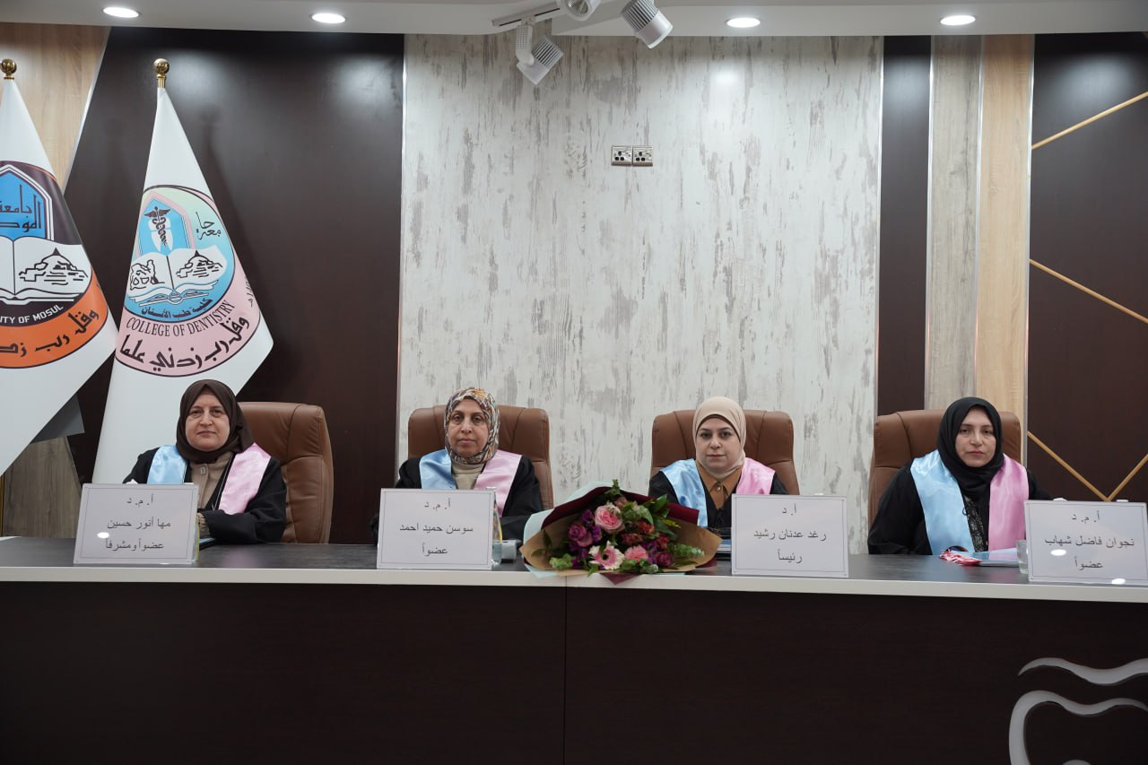 جرت يوم الخميس الموافق ١٥ / كانون الثاني / ٢٠٢٦ في فرع علاج الأسنان التحفظي / كلية طب الأسنان / جامعة الموصل، مناقشة رسالة الماجستير الموسومة: