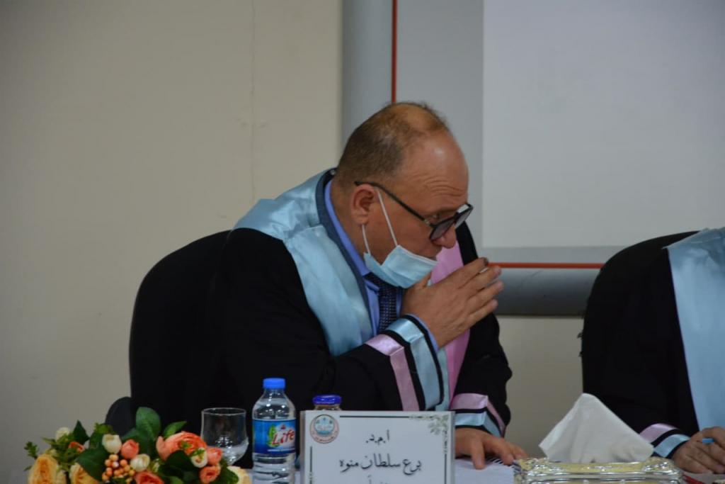 ترأس لجنة المناقشة أ.م. د علي ادريس حامد و بعضوية السادة أ.م. د. برع سلطان منوه / كلية الحدباء الجامعة/ عضواً، و م. د. نور عبدالله سليمان/ عضواً، و أ. د. عمر وليد ماجد/ عضواً و مشرفاً.