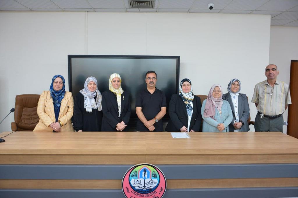 مشروع بحث أطروحة الدكتوراه للطالبة :(أسماء يوسف ذنون) في اختصاص أدوية الفم والأسنان.وتألفت لجنة المناقشة من