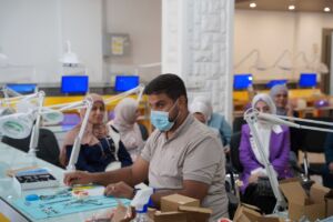 كما تضمنت الورشة جانباً عملياً تمثل في تطبيق طريقة وضع الـ Rubber Dam على القوالب الصناعية، لإكساب المشاركين خبرة عملية مباشرة في هذا المجال.