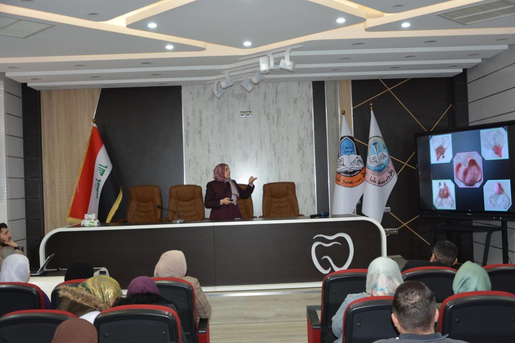 ضمن فعاليات وحدة التعليم المستمر في كلية طب الأسنان أقام فرع صناعة الأسنان ورشة عمل بعنوان (cleft lip and palate) وذلك يومي الأربعاء والخميس ٢٧-٢٨ كانون الأول/ ٢٠٢٢ وعلى رحاب قاعات عمادة كلية طب الأسنان. تضمنت ورشة العمل لليوم الأول محاضرتين لكل من م. مروة مروان شهاب وا.م. د. نعم فخري ياسين ( من فرع التقويم وطب الأسنان الوقائي). عُرض من خلال المحاضرات مقدمة عن شفة الأرنب وأسباب ظهورها إضافة إلى دراسة مسحية عن الحالات المسجلة في م. السلام التعليمي وكذلك تم عرض الخطط العلاجية لهذه الحالات ..
