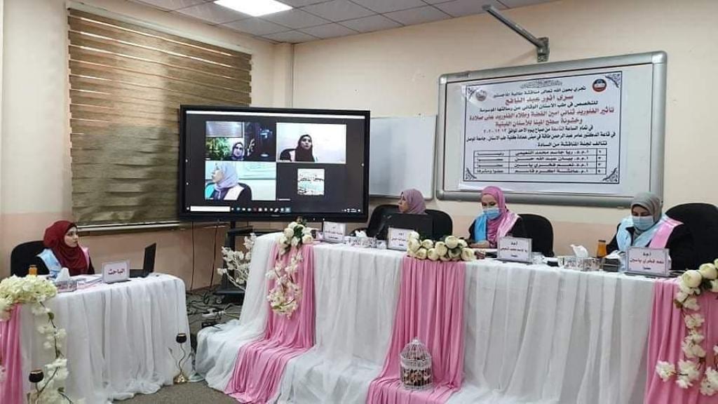 تمت على بركة الله اليوم الاحد الموافق ٢٠٢٠/١٢/١٣ مناقشة رسالة الماجستير في اختصاص طب الاسنان الوقائي، للطالبة (سرى انور عبدالنافع)، الموسومة:تأثير الفلوريد ثنائي امين الفضة وطلاء الفلوريد على صلادة وخشونة سطح الميناء للاسنان اللبنيةEffect of Silver Diamine Fluoride and Fluoride Varnish on Microhardness and Surface Roughness of Primary Teeth Enamelتألفت لجنة المناقشة من السادة: