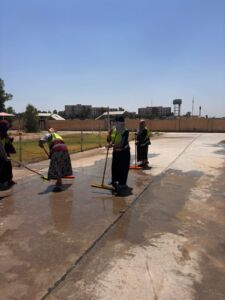 جانب من الصور التي وثقت جهود عمال التنظيف في المجمع