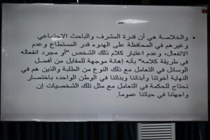 والاستاذ محمد خزعل مسؤول شعبة البحث الاجتماعي المحترم عن حيث تناولوا بعض مفاهيم العمل للتعامل مع الطلبة، وبعدها القى الاستاذ محمد عائد المدرس المساعد في شعبة البحث الاجتماعي محاضرته على الكادر الاشرافي والتي تطرقت الى الشخصية الانسانية وكيفية التعامل مع انواع شخصيات الطلبة واحتواء مشكلاتهم ومعالجتها بهدوء وعدم الانفعال وفي حالة عدم الاستجابة من قبل الطالب وملاحظة تفاقم وضعه النفسي حينها يمكن رفع تقرير بالحالة ليتم البدء بمعالجتها من قبل ذوي الاختصاص..
