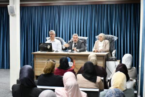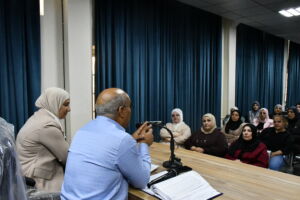 وبدأت المحاضرة بكلمة السيد مدير الاقسام الداخلية على السادة المشرفين والمشرفات ببعض التوصيات الواجب اتخاذها والالتزام بها وذلك لضمان سير العمل بالتعاون وضمن آلية سريان العملية الخدمية في الاقسام الداخلية خدمةً للصالح العام،