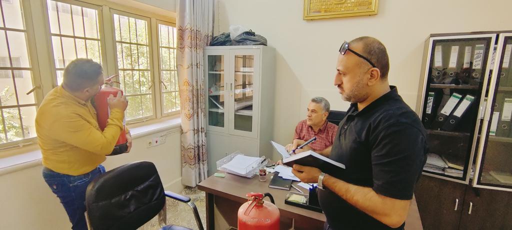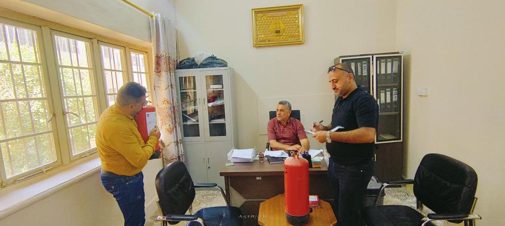 تنفيذاً لبرنامج السلامة العامة الذي تعده وزارة التعليم العالي والبحث العلمي وللحفاظ على سلامة منتسبي الاقسام الداخلية والمحافظة على الممتلكات العامة والتقليل من الخسائر الى اقل ما يمكن في حالة حدوث اي حادث طاريء لا سامح الله .زار فريق من شعبة الدفاع المدني بجامعة الموصل قسم شؤون الاقسام الداخلية واقسام الطلبة لمتابعة متطلبات الامن والسلامة العامة حيث تجول الفريق الزائر والمتمثل بالسيد عدي مناور ابراهيم و مسؤول وحدة الدفاع المدني السيد محمد صلاح الاقسام الداخلية والتجول في اروقة الاقسام وتم فحص كافة مطافى الحريق
