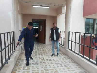 رش مبيد حشري في الباحات الخارجية في ابنية الاقسام الداخلية
