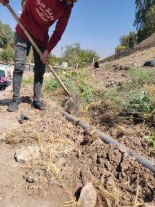 تم اليوم الاحد الموافق 2025/06/29 إكمال زراعة 60 شتلة ددونيا على سفح مدخل مجمع الحدباء السكني للطالبات وكذلك مد خط ري بالتنقيط للشتلات من قبل عمال الخدمات السيد علي عبد العزيز والسيد زيد نزار والسيد أكرم حازم وبمتابعة المهندسات الزراعيات لمى منير ، لبنى عبدالحكم ، وئام طارق ، صفا محمد ، والمهندس محمد عدنان.