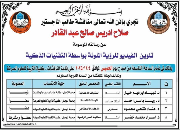 كلية التربية واحدة من كليات جامعة الموصل الغراء. و قد تأسست عام 1975، وانشطرت في مطلع العام 2014 إلى كلية التربية للعلوم الصرفة وكلية التربية للعلوم الإنسانية، وتضم كلية التربية للعلوم الصرفة مجموعة من الأقسام العلمية بحسب طبيعة الدراسة أو التخصص الذي تشتمل عليه الأقسام العلمية وتمثلها أقسام الكيمياء و الفيزياء وعلوم الحاسوب والرياضيات وعلوم الحياة، يتولى مهمة التدريس والإشراف على الطلبة نخبة طيبة من السادة التدريسيين والتدريسيات والذين يصل عددهم إلى 272 تدريسياً اقرأ المزيد