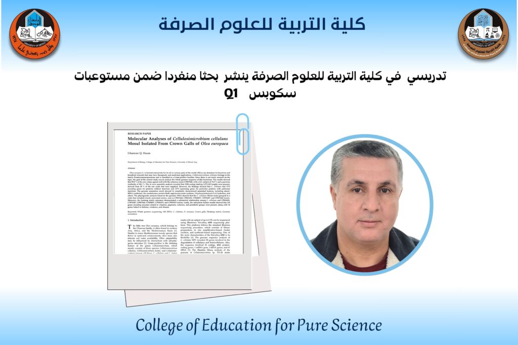 إنجاز علمي متميز في جامعة الموصل: تدريسي في كلية التربية للعلوم الصرفة ينشر بحثاً منفرداً في مجلة علمية رصينة مصنفة ضمن مستوعبات سكوبس Q1...
