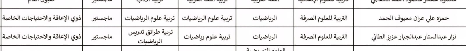 تُعلن شعبة الدراسات العليا في كلية التربية للعلوم الصرفة عن أسماء الطلبة المتقدمين المرشحين للقبول في الدراسات العليا للعام الدراسي 2025–2026، وذلك بعد معالجة الدرجات الحرجة.