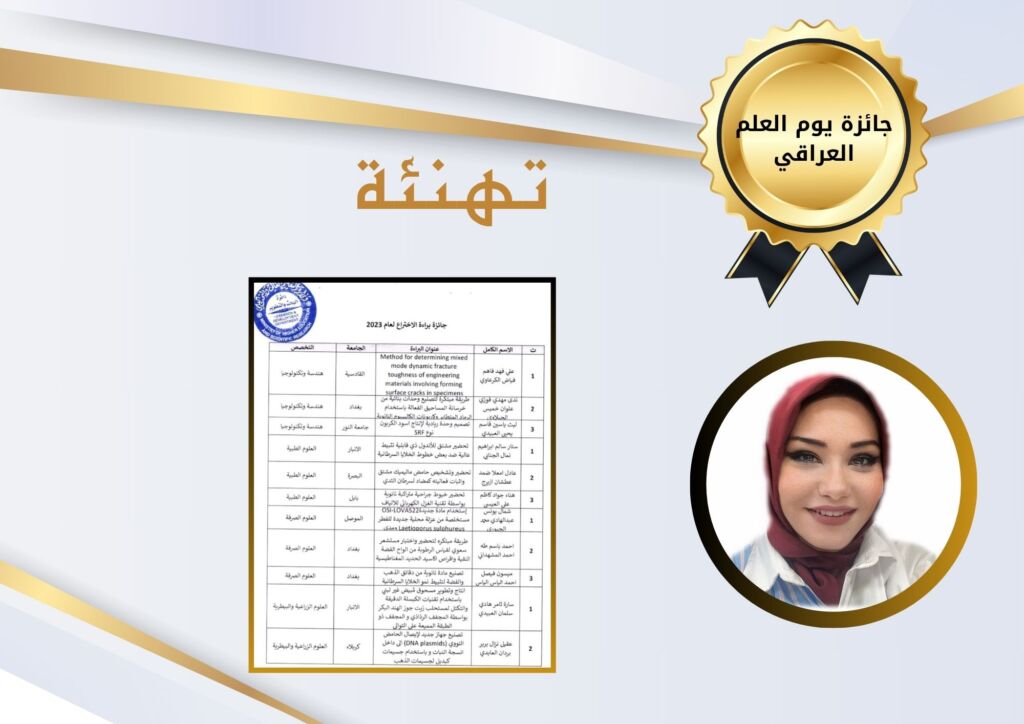 تهنئة بمناسبة الفوز بجائزة يوم العلم العراقي