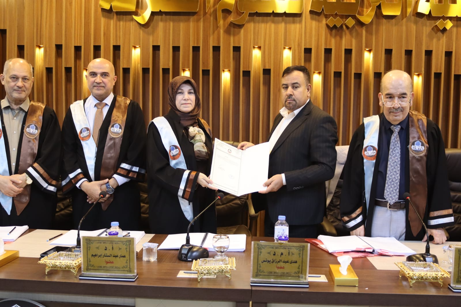 ترأس لجنة المناقشة الاستاذ الدكتور عماد عبدالاله صالح وعضوية كل من الأستاذ الدكتور عمار عبدالستار ابراهيم والأستاذ المساعد الدكتورة هدى عبدالرزاق يونس والأستاذ المساعد الدكتورة نور حازم محمد والأستاذ المساعد الدكتورة رنا حسن احمد وباشراف وعضوية الأستاذ الدكتور عامر ذنون عبدالرحمن والأستاذ المساعد الدكتور محمد محمد امين عبدالله.