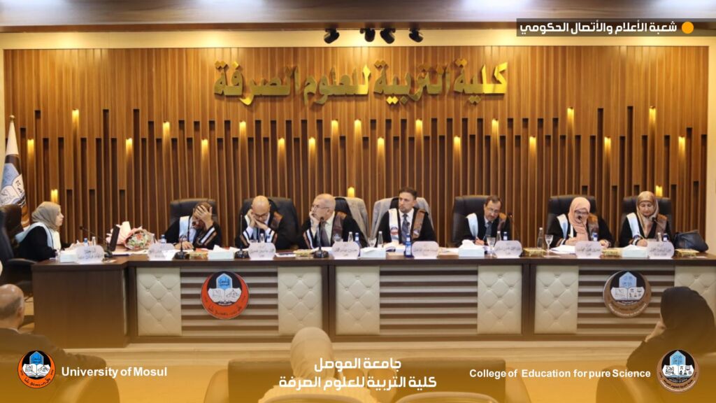 تحقيقا للهدف الرابع من اهداف التنمية المستدامة (التعليم الجيد) نوقشت في كلية التربية للعلوم الصرفة بجامعة الموصل اطروحة الدكتوراه الموسومة” تطوير طرائق تحليلية في تقدير بعض المركبات الدوائية وأمزجتها الثنائية باستخدام كواشف متنوعة “