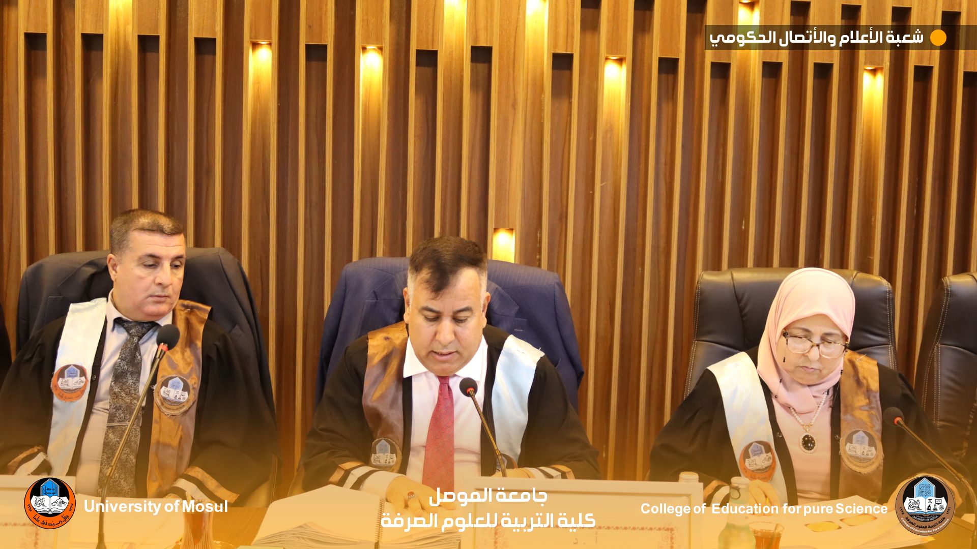 ترأس لجنة المناقشة الأستاذ الدكتورة منى حسين علي وعضوية كل من الأستاذ الدكتور جاسم فتحي علي والاستاذ المساعد الدكتورة مرا أسامة احمد والاستاذ المساعد الدكتور سراج محمد عبدالله والأستاذ المساعد الدكتور غزوان قاسم حسن وبإشراف وعضوية الأستاذ الدكتور يوسف جبار اسماعيل والاستاذ الدكتور عمر يونس محمد.