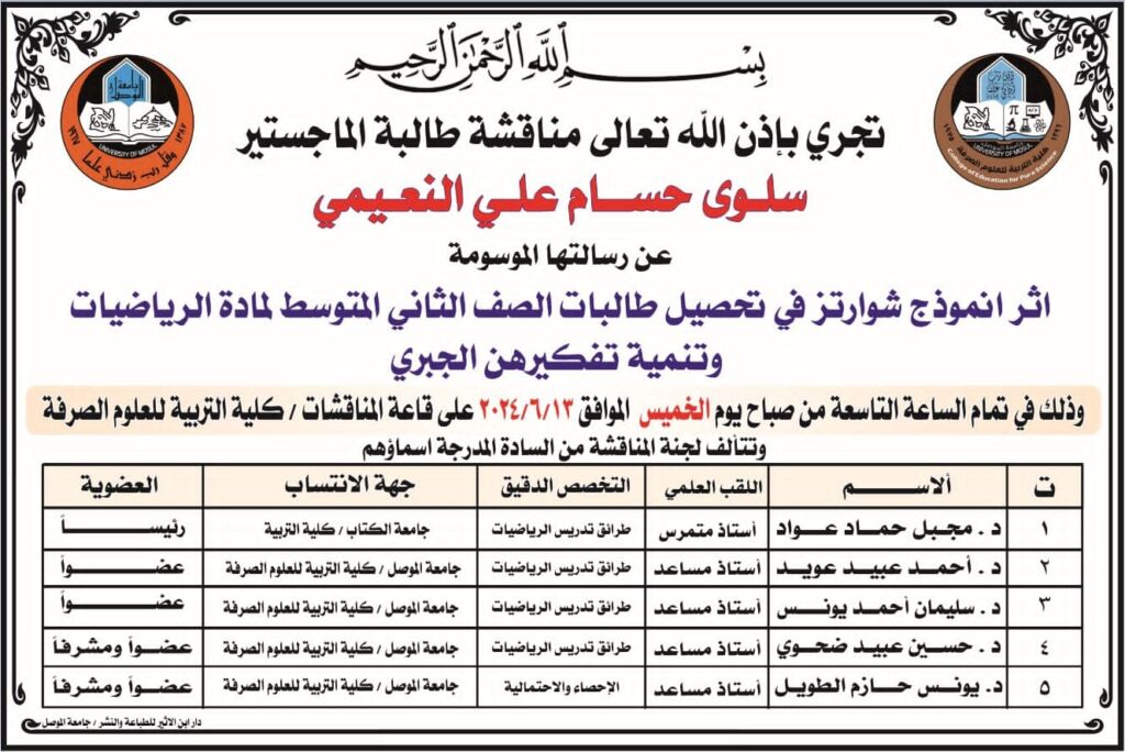 على الطلبة المتقدمين للدراسات العليا للعام الدراسي ٢٠٢٤ – ٢٠٢٥ من الذين لم تصلهم الاستمارة المدققة ولم يسلموا الملفات الورقية يرجى مراجعة شعبة الدراسات العليا في الكلية بالسرعة الممكنة وذلك لقرب موعد انتهاء التقديم .