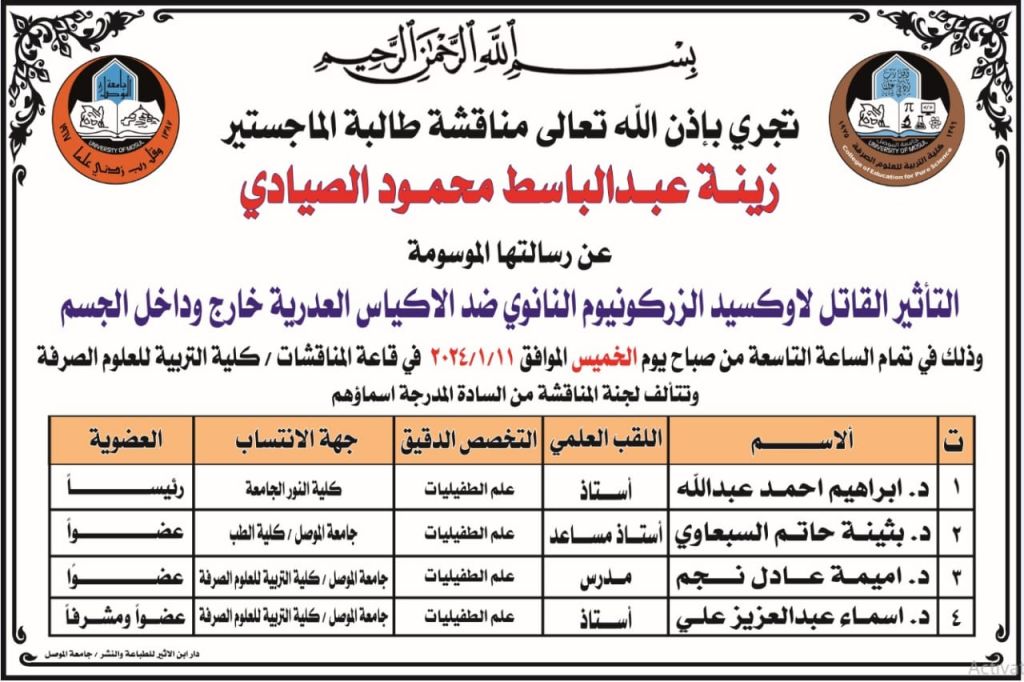اعلان من شعبة الدراسات العليا في كلية التربية للعلوم الصرفة