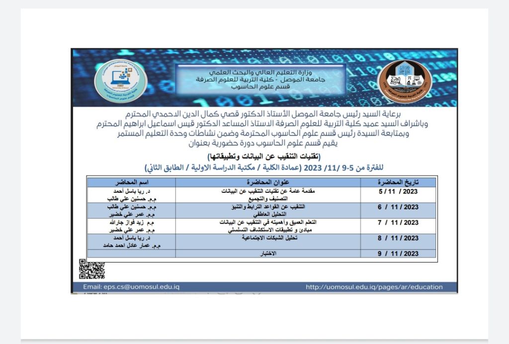 اعلان عن دورة تعليم مستمر _ قسم علوم الحاسوب