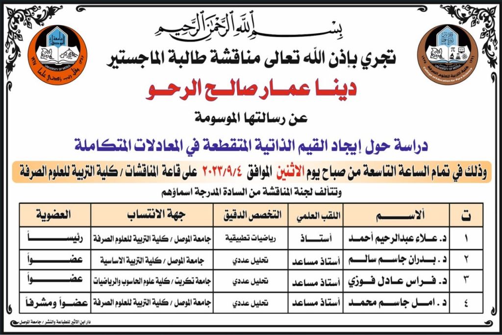 موعد مناقشة رسالة ماجستير -قسم الكيمياء