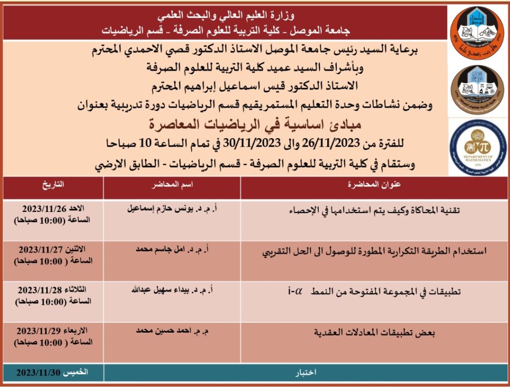 اعلان موعد دورة تعليم مستمر _قسم الرياضيات