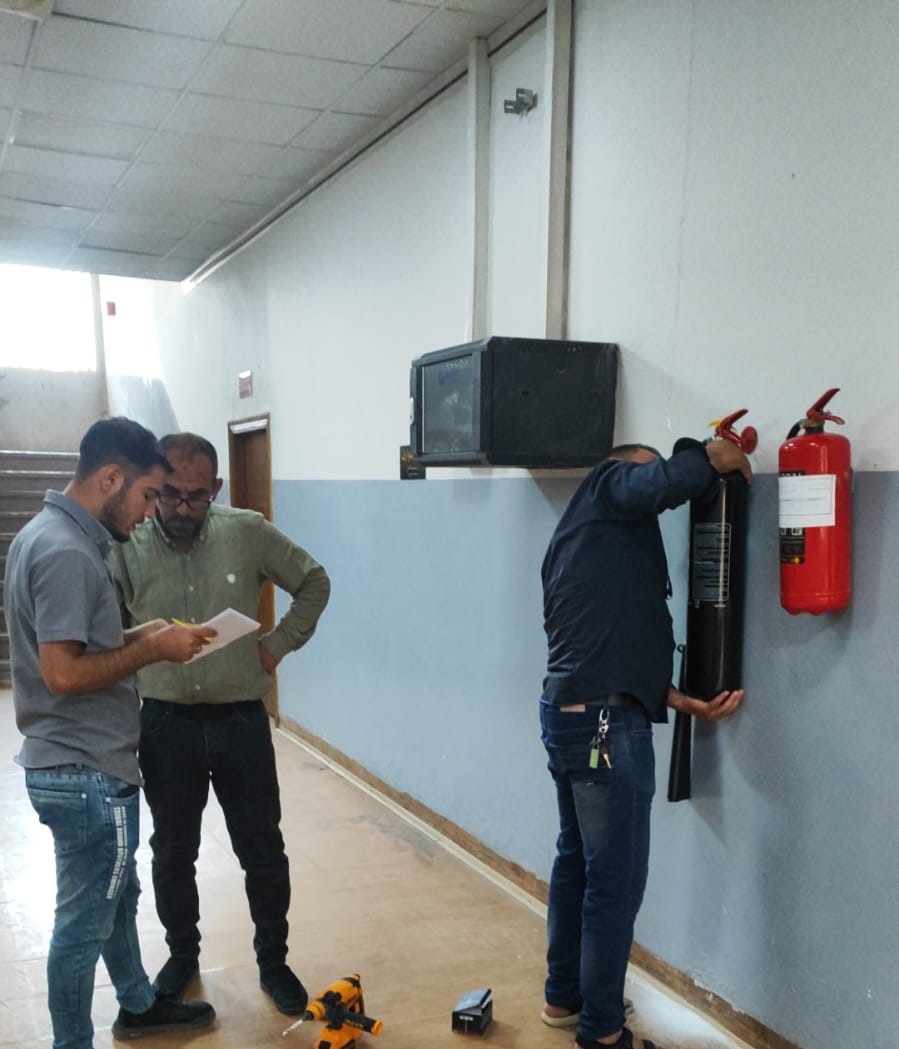 تتفيذا لتوجيهات رئاسة جامعة الموصل وتحت إشراف السيد عميد كلية التربية للعلوم الصرفة الاستاذ المساعد الدكتور جاسم فتحي علي المحترم وبمتابعة السيد معاون العميد للشؤون الإدارية الاستاذ المساعد الدكتور يونس سعدي سعيد المحترم اجرت شعبة الشؤون الإدارية ووحدة الدفاع المدني والمتابعة في الكلية الفحص الدوري لمنظومة ومطافئ الحريق وابواب الطوارئ وتأهيل غرفة الخفراء تحسبا لأي ظرف طارئ سائلين الله عز وجل أن يعم على الجميع بالستر والسلامة.