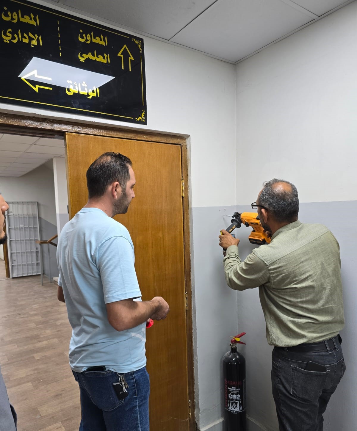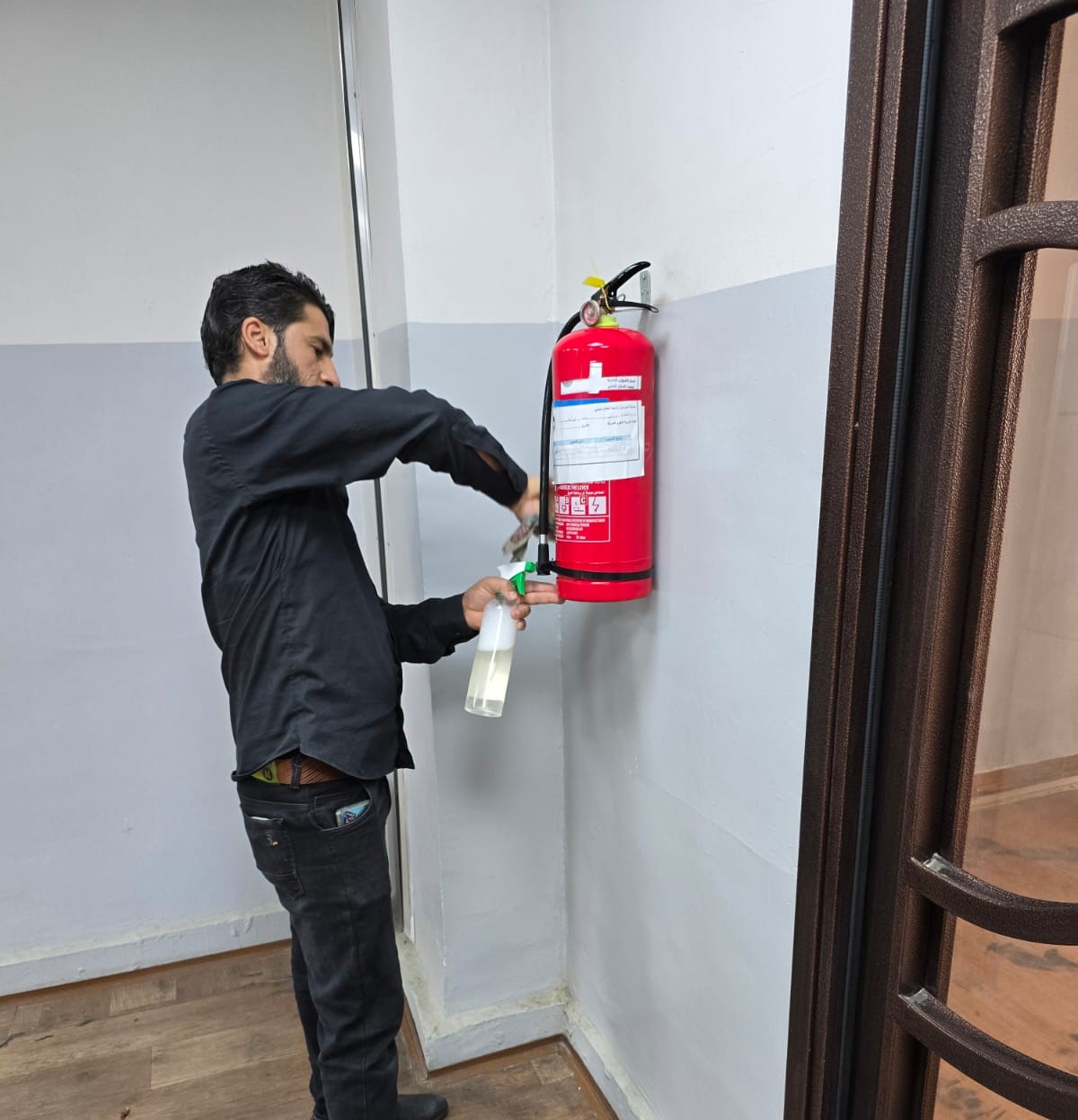 الفحص الدوري لمنظومة ومطافئ الحريق وابواب الطوارئ في كلية التربية للعلوم الصرفة