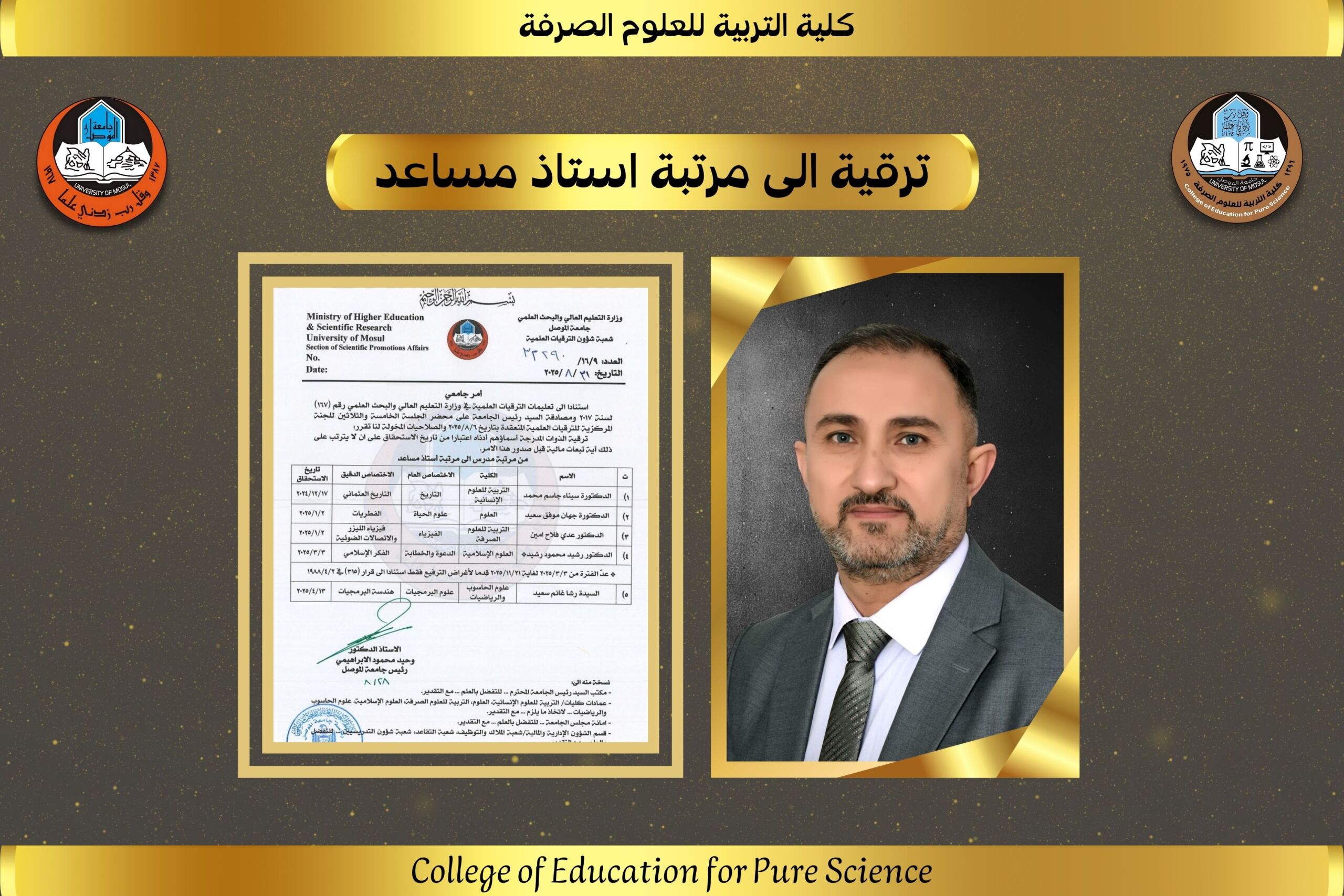 تتقدم أسرة كلية التربية للعلوم الصرفة متمثلة بعميدها الاستاذ الدكتور جاسم فتحي علي المحترم بخالص التهاني والتبريكات الى الدكتور عدي فلاح امين من قسم الفيزياء [إقرأ المزيد]
