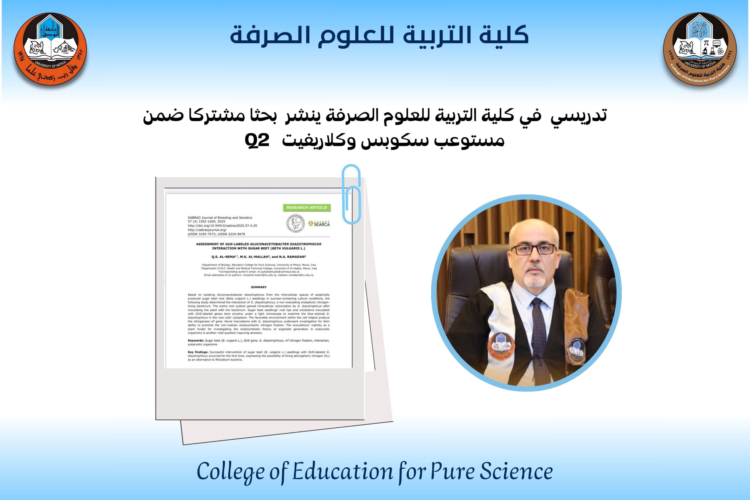 نشر الاستاذ الدكتور قتيبة شعيب النعمة التدريسي في كليتنا والمختص في التقنيات الحياتية النباتية بحث علمي بالتعاون مع عدد من الباحثين في جامعة الحدباء في [إقرأ المزيد]