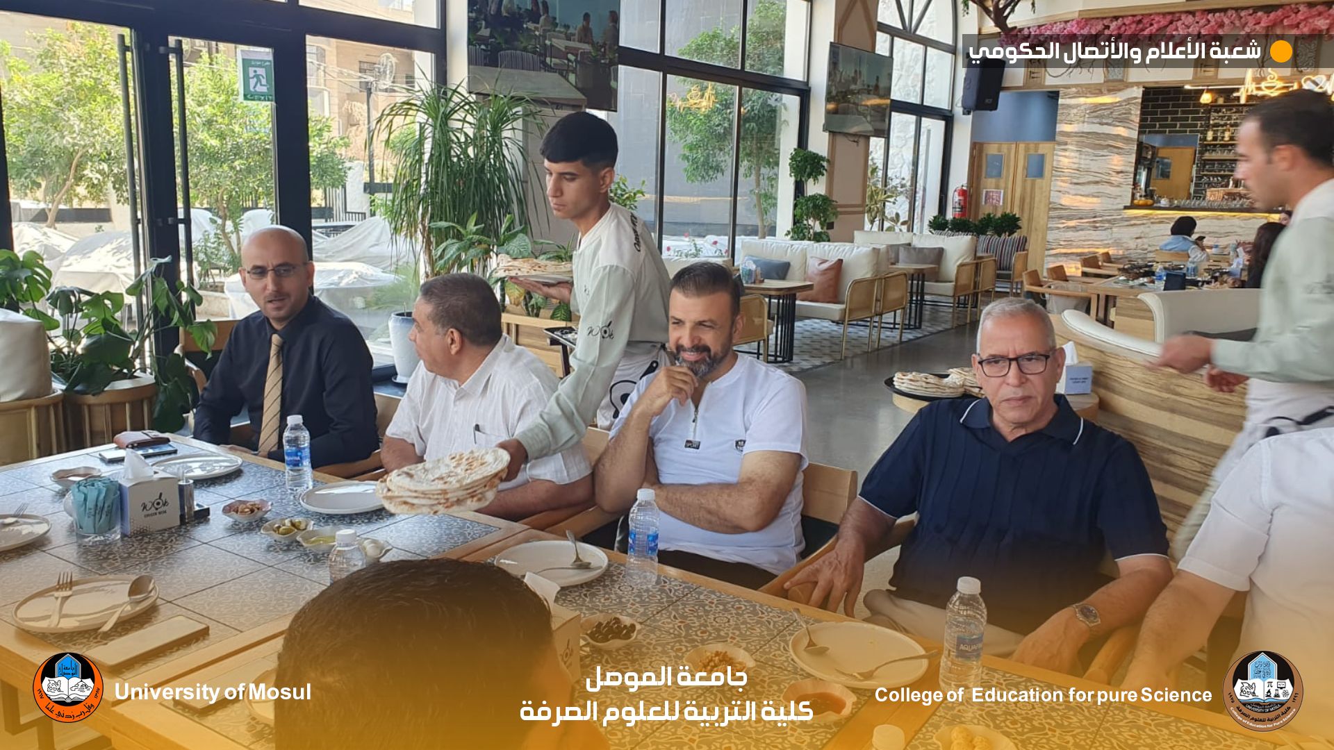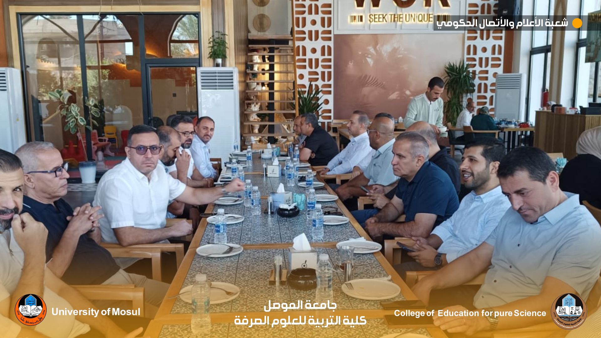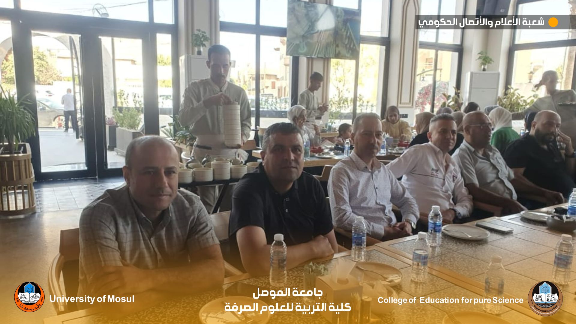 برعاية السيد رئيس جامعة الموصل الأستاذ الدكتور وحيد محمود الإبراهيمي المحترم وبحضور السيد عميد كلية التربية للعلوم الصرفة الأستاذ الدكتور جاسم فتحي علي المحترم والسيد رئيس قسم الفيزياء الأستاذ المساعد الدكتور مروان حفيظ يونس المحترم والكادر التدريسي للقسم وتحت شعار ” طريق الإبداع يبدأ من التواصل الفعال” نظم قسم الفيزياء صباح يوم الأربعاء الموافق ١ تشرين الاول ٢٠٢٥ نشاطه الاجتماعي الأول للعام الدراسي الجديد، وذلك على رحاب مطعم WOK