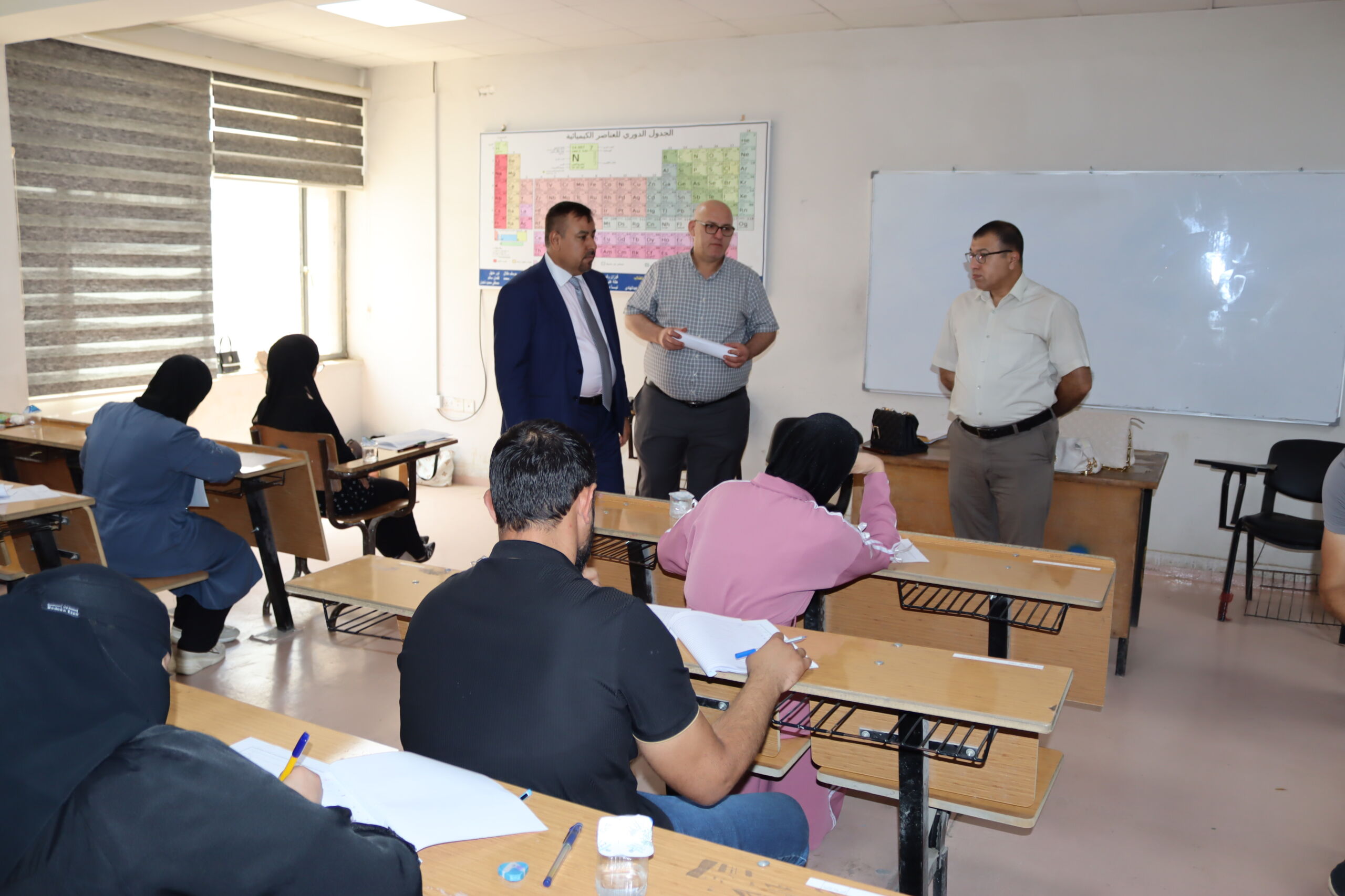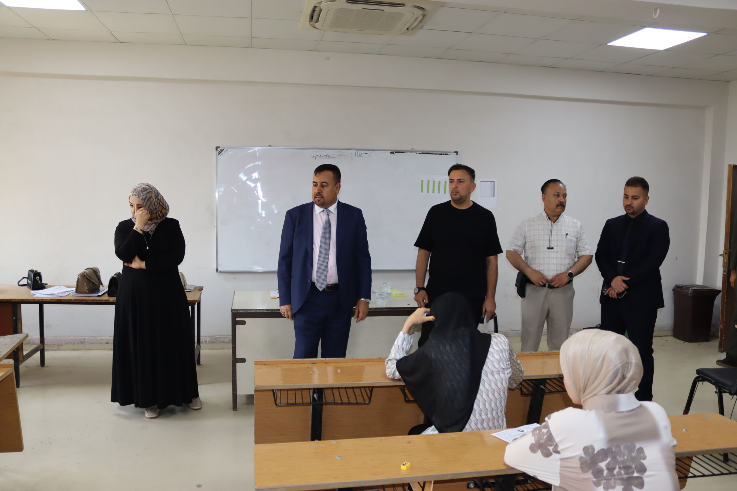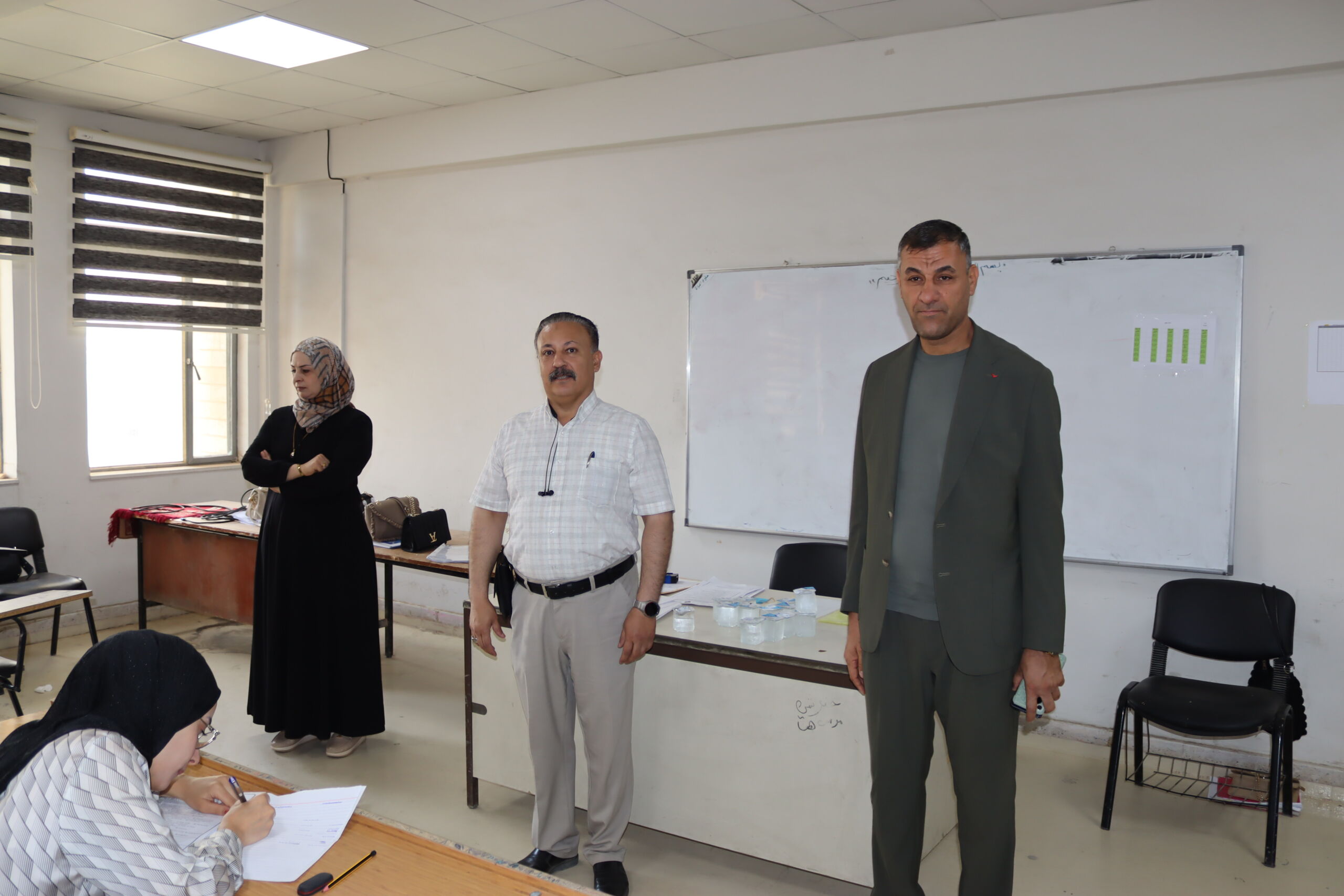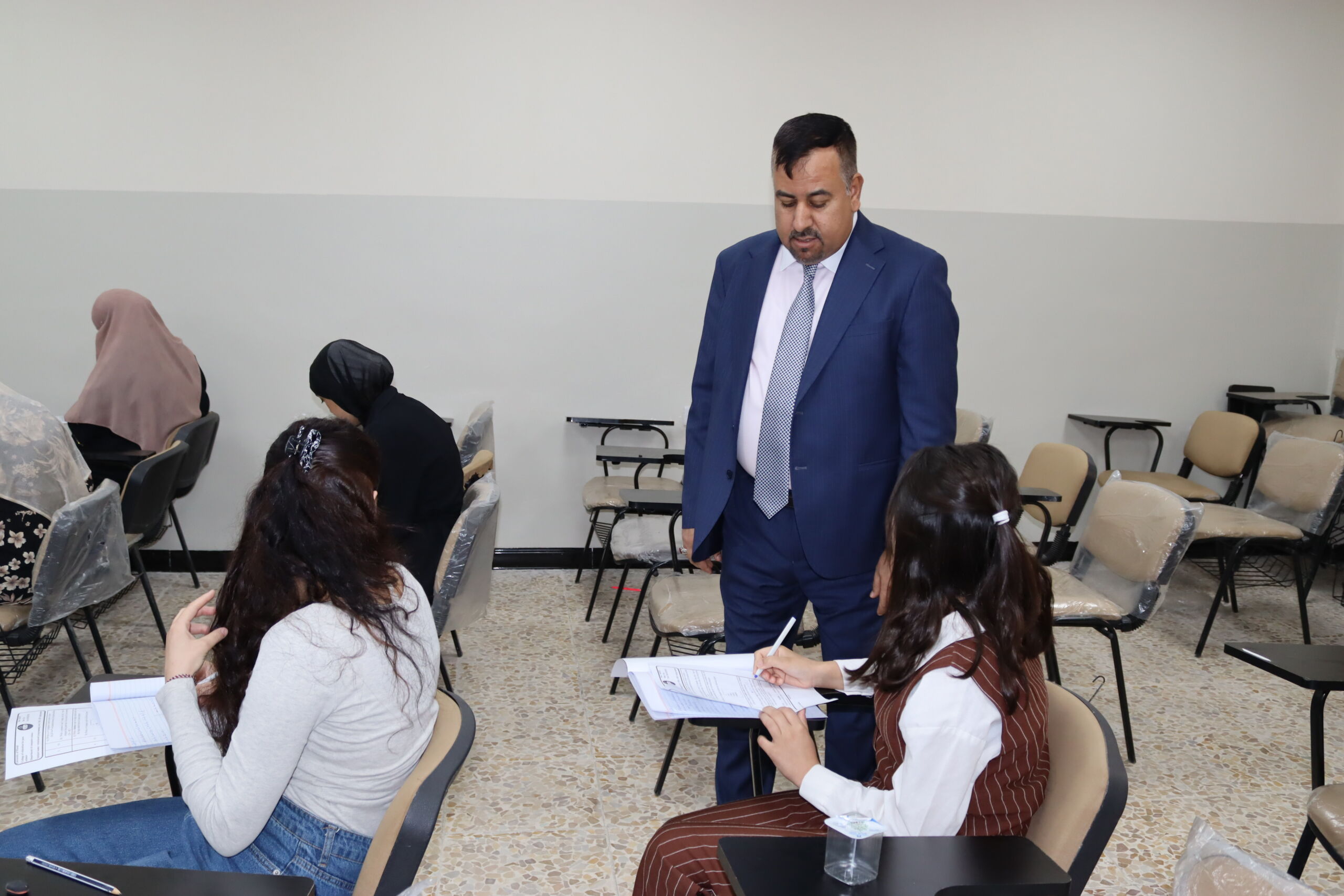 انطلقت صباح اليوم الأحد الموافق ١ حزيران ٢٠٢٥ الامتحانات النهائية لطلبة المرحلة الأولى في كلية التربية للعلوم الصرفة حيث أجرى السيد عميد الكلية الاستاذ المساعد الدكتور جاسم فتحي علي المحترم جولة تفقدية لمتابعة سير الامتحانات في أقسام الكلية كافة رافقه السيد معاون العميد للشؤون الإدارية الاستاذ المساعد الدكتور يونس سعدي سعيد المحترم ورؤساء الأقسام العلمية المحترمين حيث وقف سيادته على مجريات الامتحانات مطلعا على تفاصيل الامتحان من اسئلة وتوفير خدمات تساعد على خلق بيئة مناسبة لأداء الامتحان وأكد سيادته دعمه الدائم لابناءه الطلبة بما يساعدهم على رفع مستواهم العلمي الذي يليق بسمعة الكلية، هذا واثنى سيادته على الجهود المبذولة من قبل الأقسام العلمية كافة متمثلة برؤساء الأقسام واللجان الامتحانية والكادر التدريسي وفي ختام جولته التفقدية تمنى سيادته لابناءه الطلبة التوفيق والنجاح الدائم.