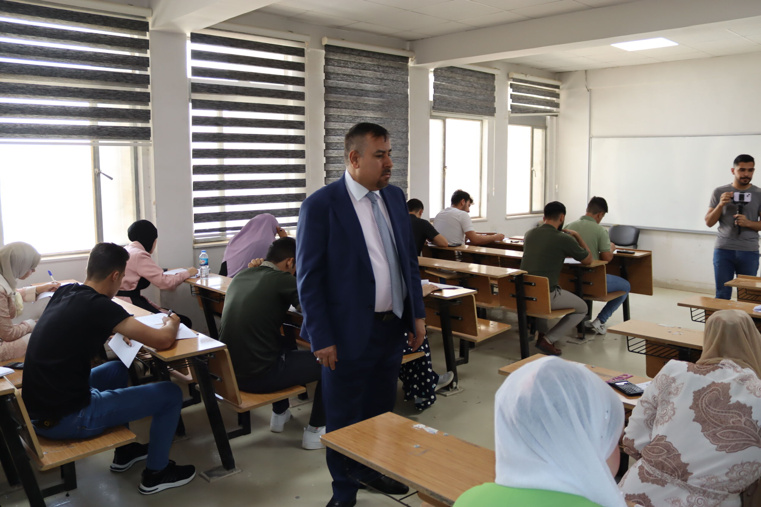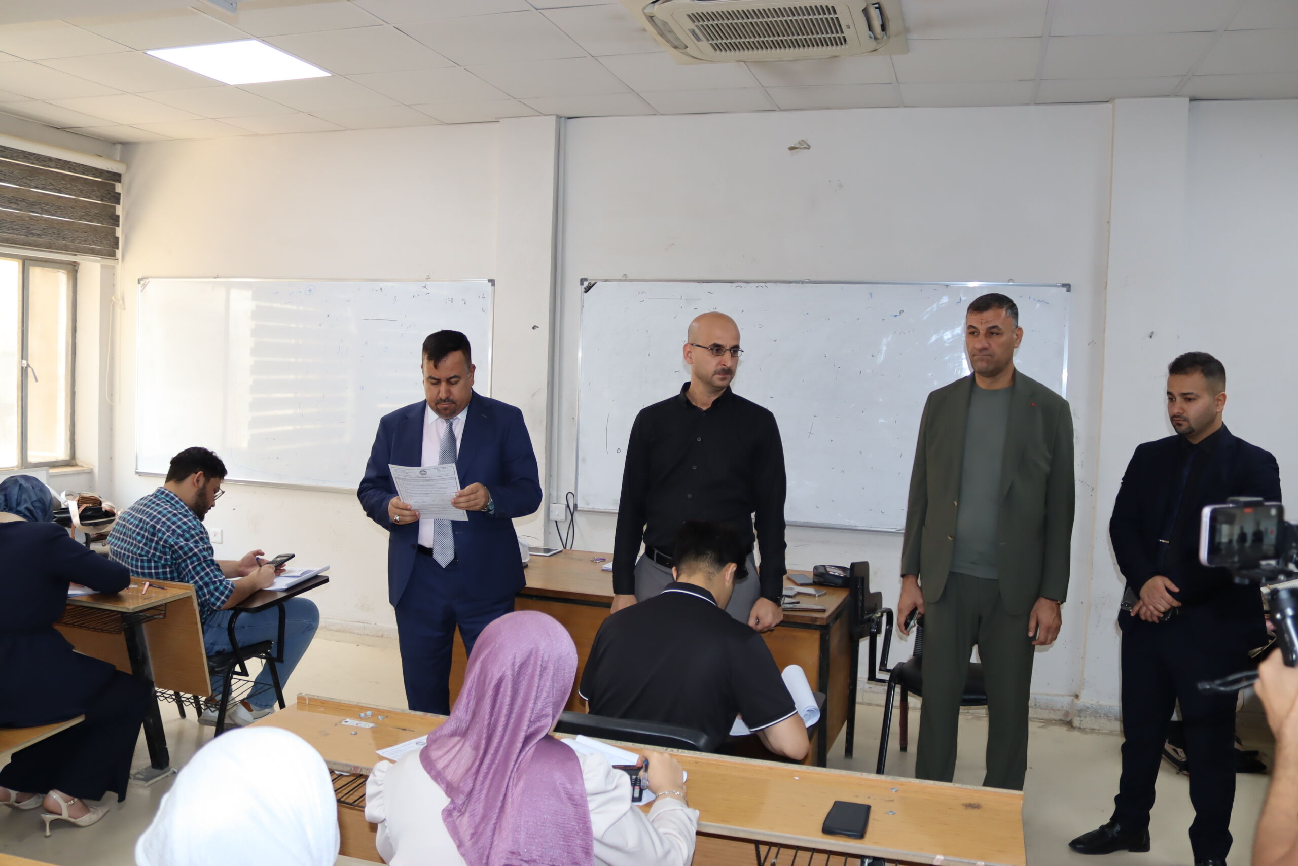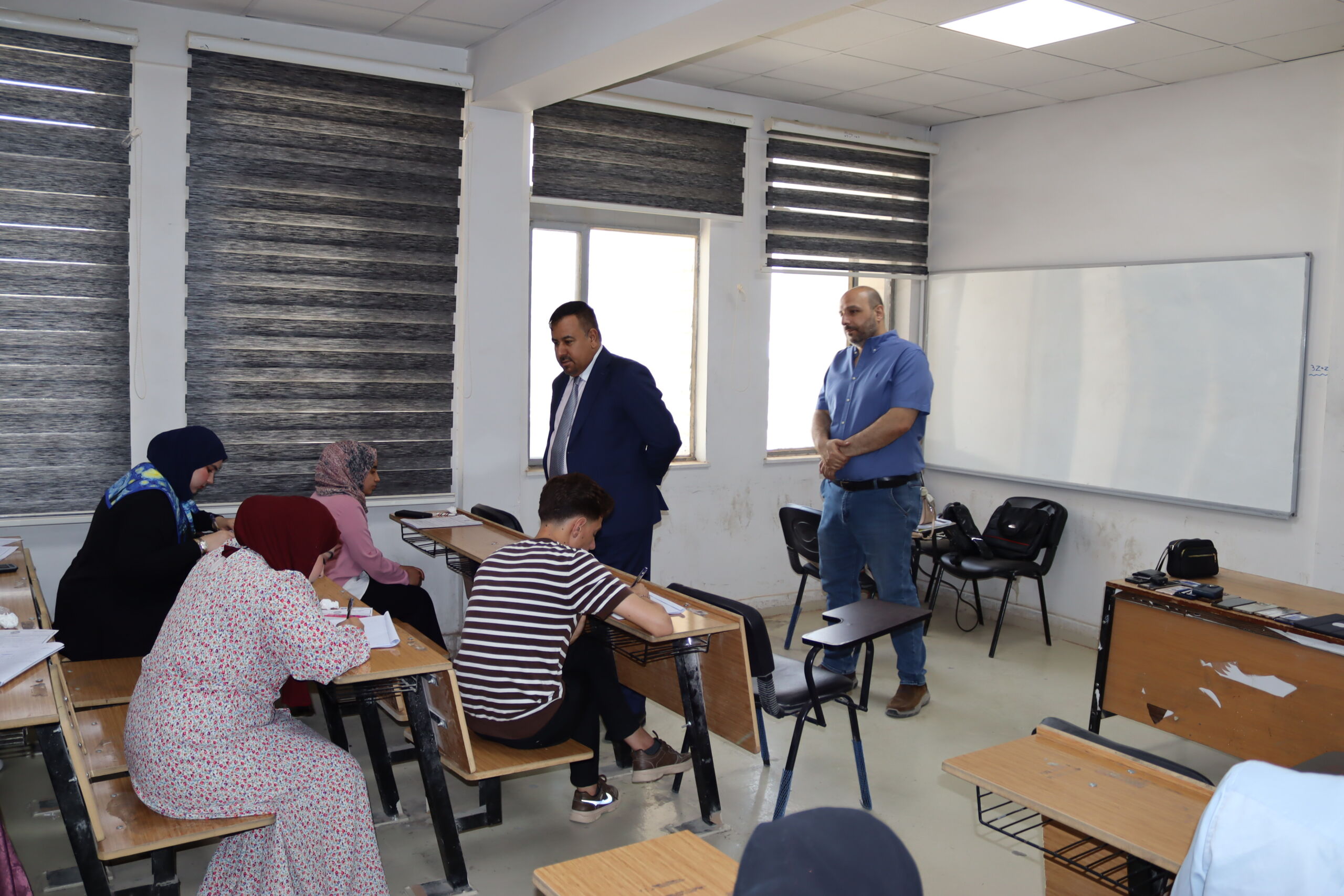 انطلقت صباح اليوم الأحد الموافق ١ حزيران ٢٠٢٥ الامتحانات النهائية لطلبة المرحلة الأولى في كلية التربية للعلوم الصرفة حيث أجرى السيد عميد الكلية الاستاذ المساعد الدكتور جاسم فتحي علي المحترم جولة تفقدية لمتابعة سير الامتحانات في أقسام الكلية كافة رافقه السيد معاون العميد للشؤون الإدارية الاستاذ المساعد الدكتور يونس سعدي سعيد المحترم ورؤساء الأقسام العلمية المحترمين حيث وقف سيادته على مجريات الامتحانات مطلعا على تفاصيل الامتحان من اسئلة وتوفير خدمات تساعد على خلق بيئة مناسبة لأداء الامتحان وأكد سيادته دعمه الدائم لابناءه الطلبة بما يساعدهم على رفع مستواهم العلمي الذي يليق بسمعة الكلية، هذا واثنى سيادته على الجهود المبذولة من قبل الأقسام العلمية كافة متمثلة برؤساء الأقسام واللجان الامتحانية والكادر التدريسي وفي ختام جولته التفقدية تمنى سيادته لابناءه الطلبة التوفيق والنجاح الدائم.