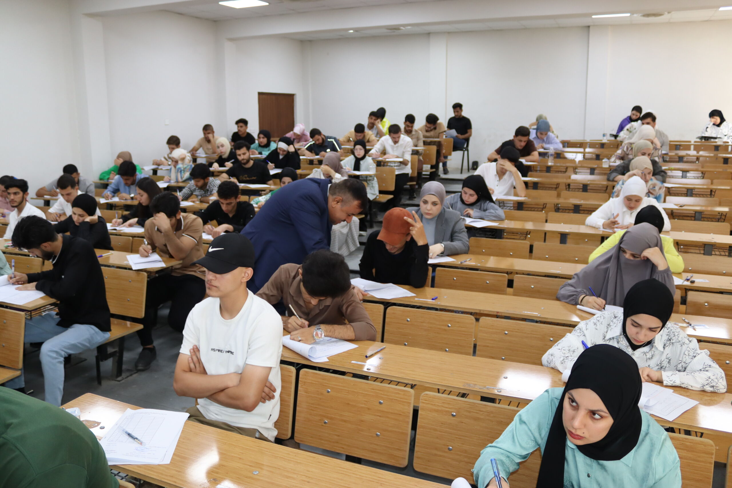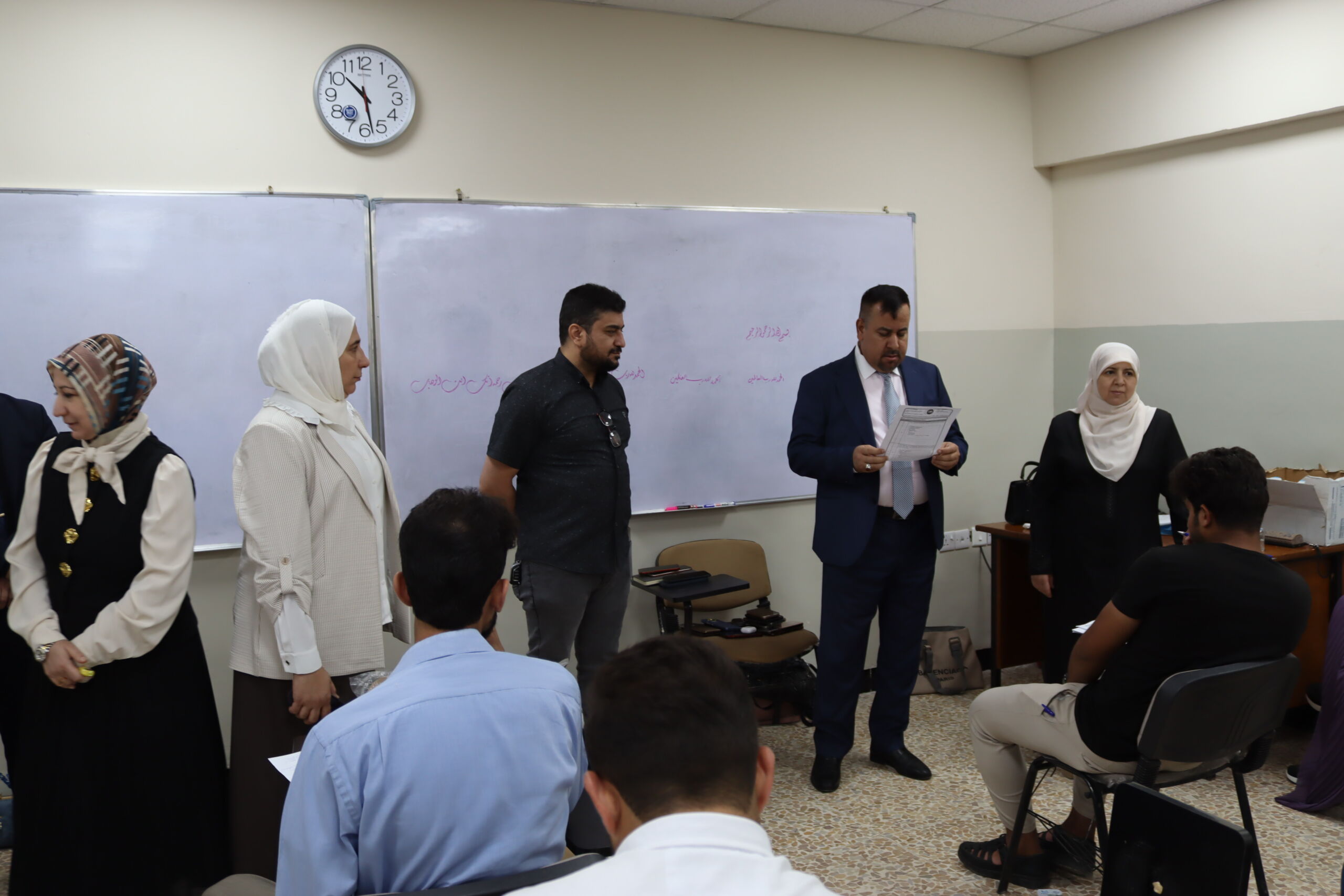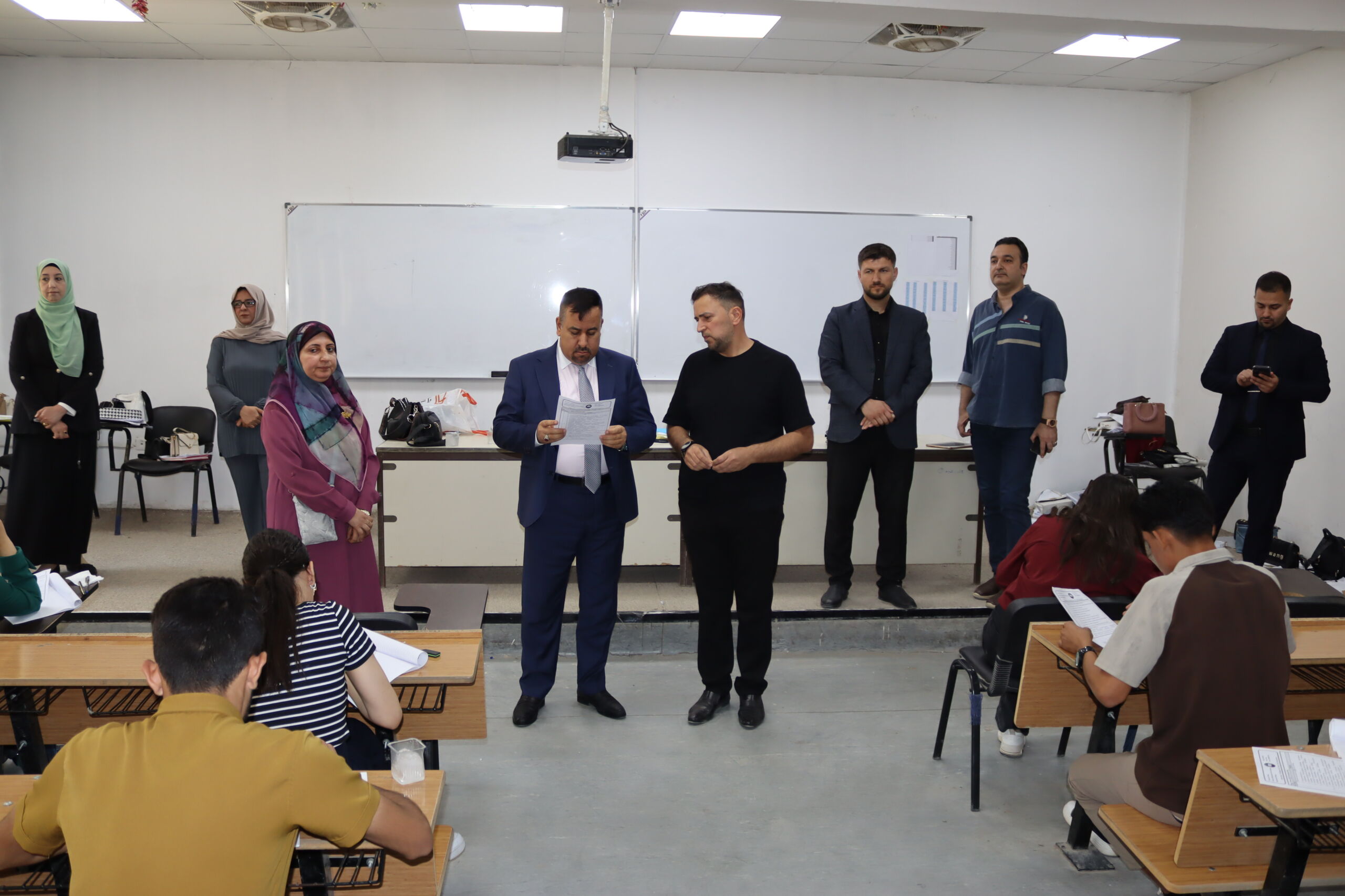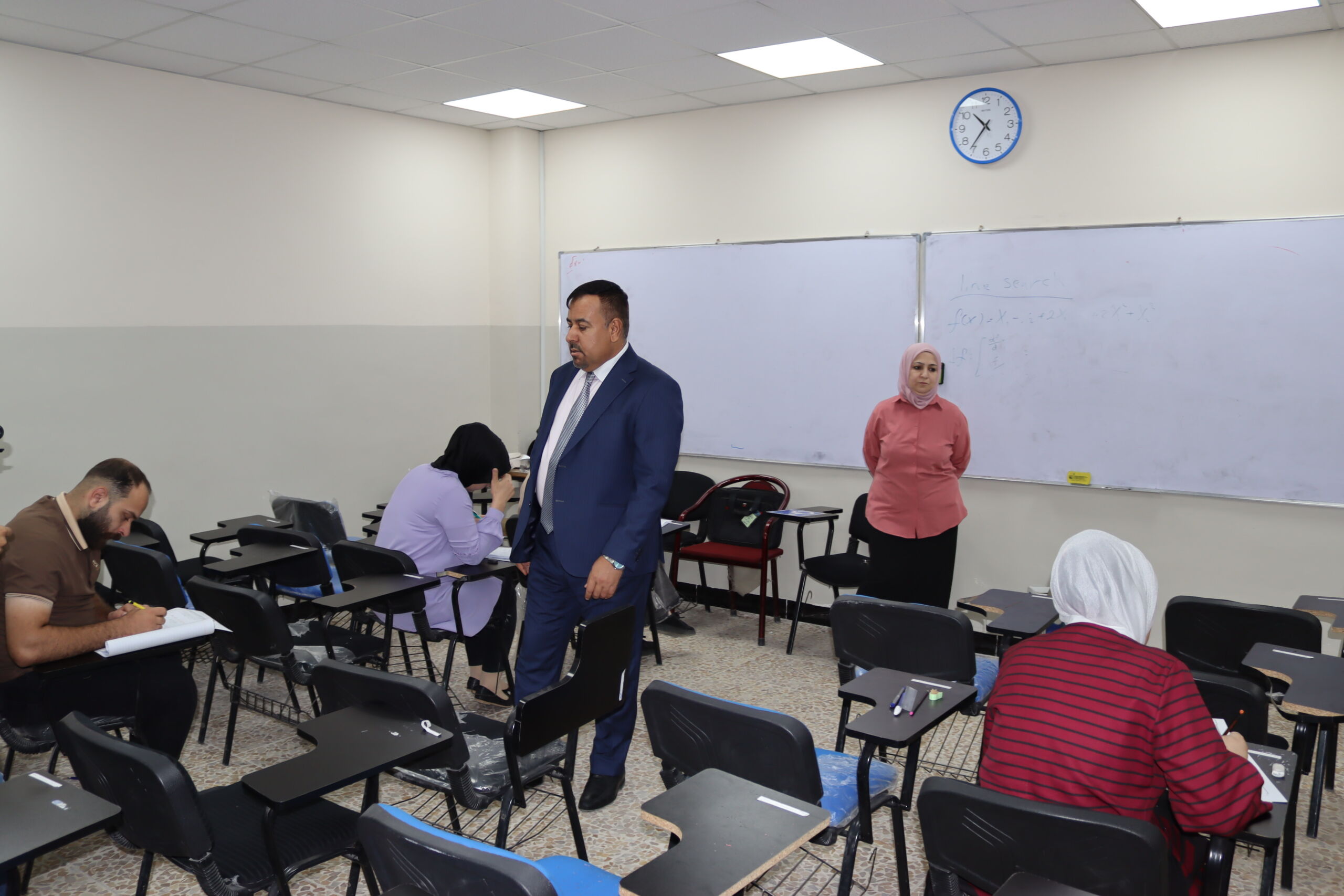انطلقت صباح اليوم الأحد الموافق ١ حزيران ٢٠٢٥ الامتحانات النهائية لطلبة المرحلة الأولى في كلية التربية للعلوم الصرفة حيث أجرى السيد عميد الكلية الاستاذ المساعد الدكتور جاسم فتحي علي المحترم جولة تفقدية لمتابعة سير الامتحانات في أقسام الكلية كافة رافقه السيد معاون العميد للشؤون الإدارية الاستاذ المساعد الدكتور يونس سعدي سعيد المحترم ورؤساء الأقسام العلمية المحترمين حيث وقف سيادته على مجريات الامتحانات مطلعا على تفاصيل الامتحان من اسئلة وتوفير خدمات تساعد على خلق بيئة مناسبة لأداء الامتحان وأكد سيادته دعمه الدائم لابناءه الطلبة بما يساعدهم على رفع مستواهم العلمي الذي يليق بسمعة الكلية، هذا واثنى سيادته على الجهود المبذولة من قبل الأقسام العلمية كافة متمثلة برؤساء الأقسام واللجان الامتحانية والكادر التدريسي وفي ختام جولته التفقدية تمنى سيادته لابناءه الطلبة التوفيق والنجاح الدائم.