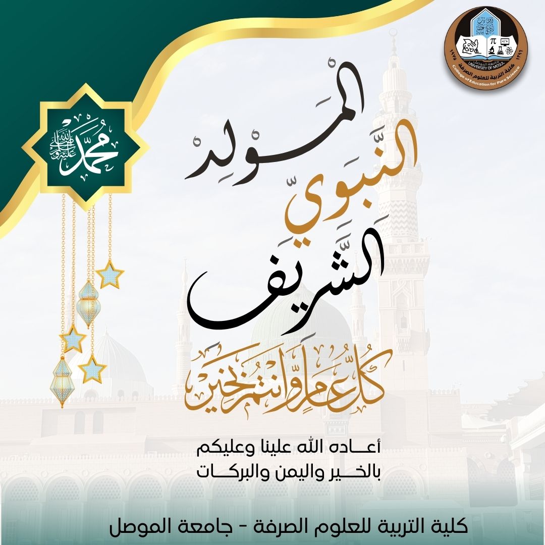 بسم الله الرحمن الرحيم….( وَ ما أَرْسَلْناكَ إِلاَّ رَحْمَةً لِلْعالَمِينَ ) ونحن نتنفس عبق نسائم هذا اليوم المبارك ونسبح في غمرات الهدوء والسكينة والوقار والشعور اللامتناهي بالفخر والعز والكرامة بذكرى ولادة أعظم مخلوق رأته الأبصار وأدركته البصائر كيف لا وهو نبي الاسلام ورسول الرحمة والسلام سيدنا ونبينا محمد بن عبدالله صلى الله عليه وآله وصحبه وسلم. هذا النبي الذي غير مجرى التأريخ والى الأبد وأسس أعظم حضارة عرفتها البشرية. لتكن ذكرى ولادته مناسبة لتعظيم وشائج الرحمة والمحبة بيننا وحافزا لبناء بلدنا العراق العظيم. ونقطة انطلاق نحو الارتقاء والتسلح باسباب العلم والمعرفة لننهض بمؤسساتنا التعليمية ونجعلها منارا للعلم وبناء الوطن والمواطن.