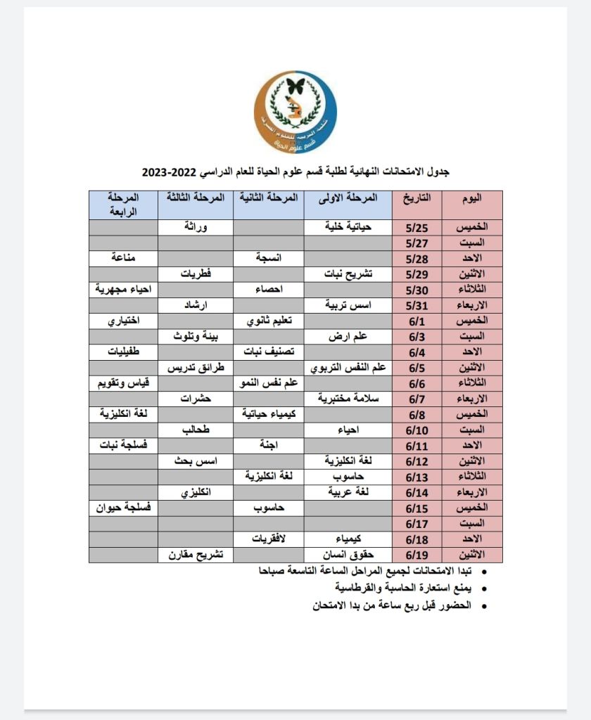 جدول الامتحان النهائي_قسم علوم الحاسوب
