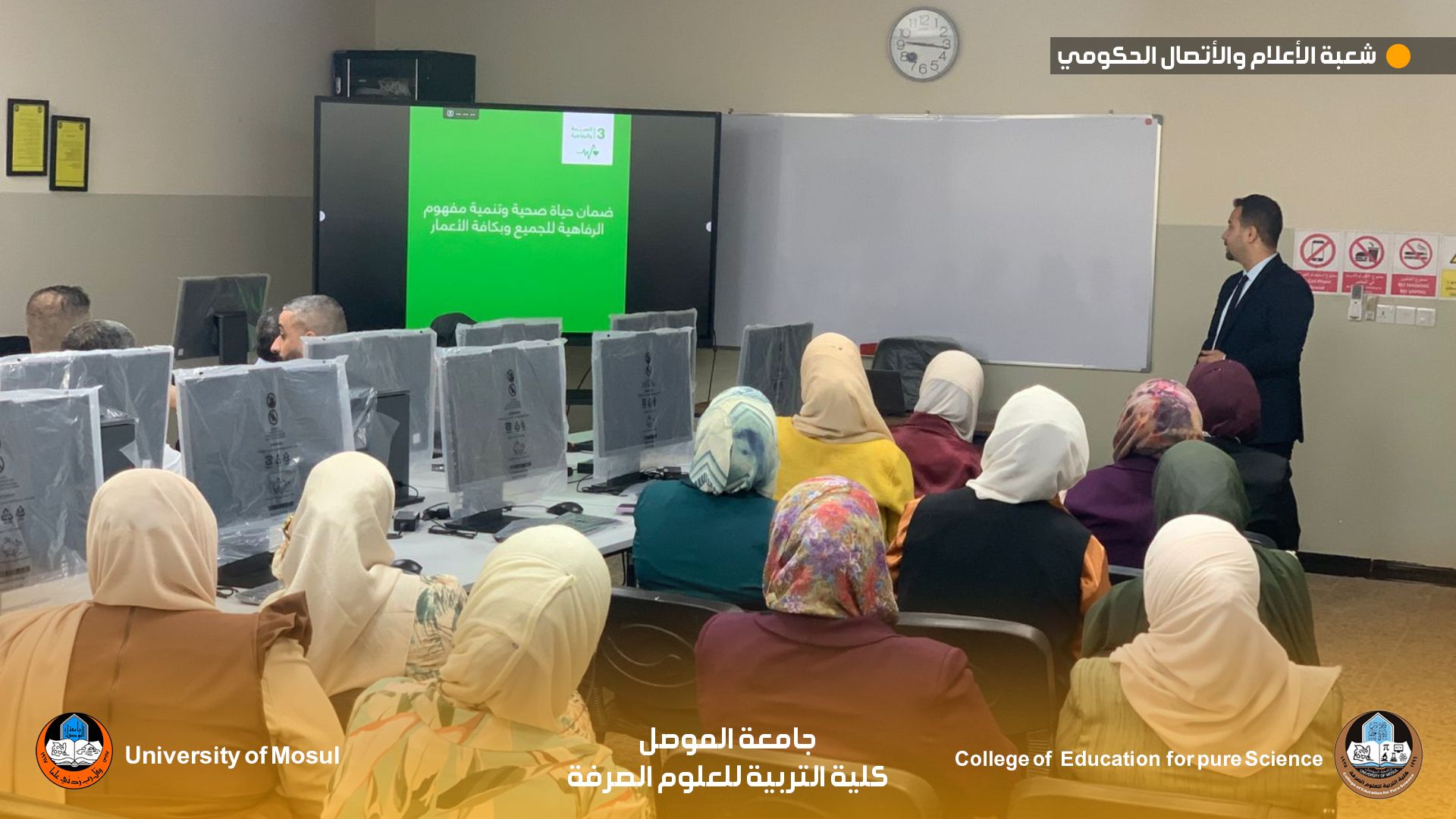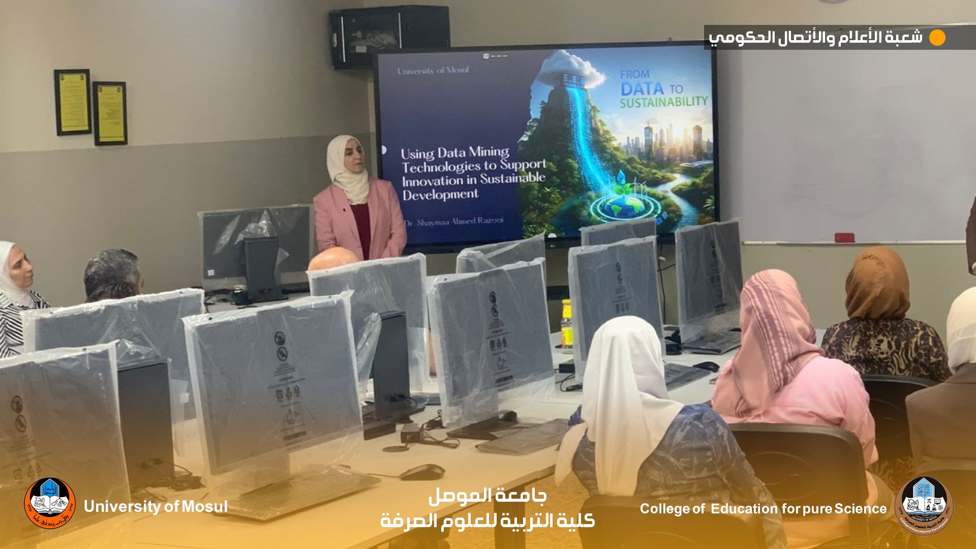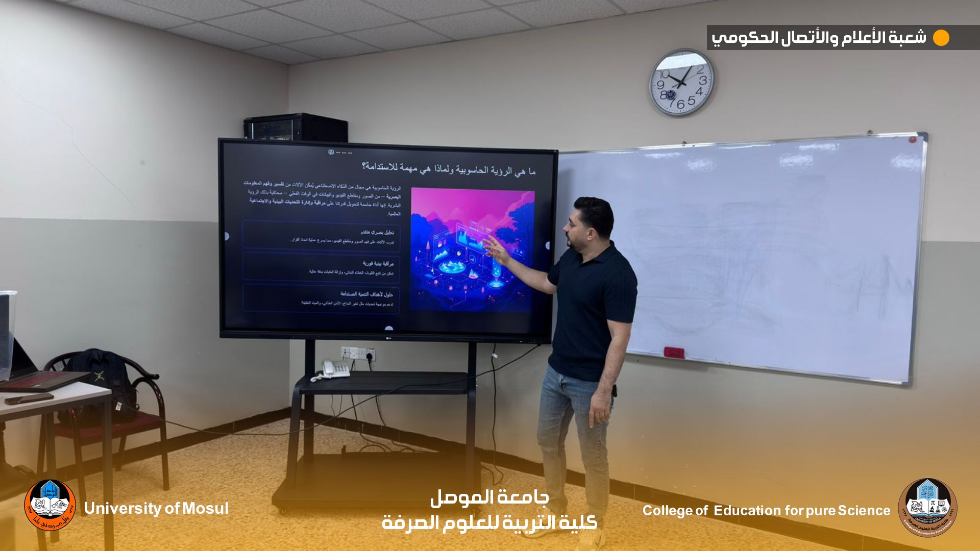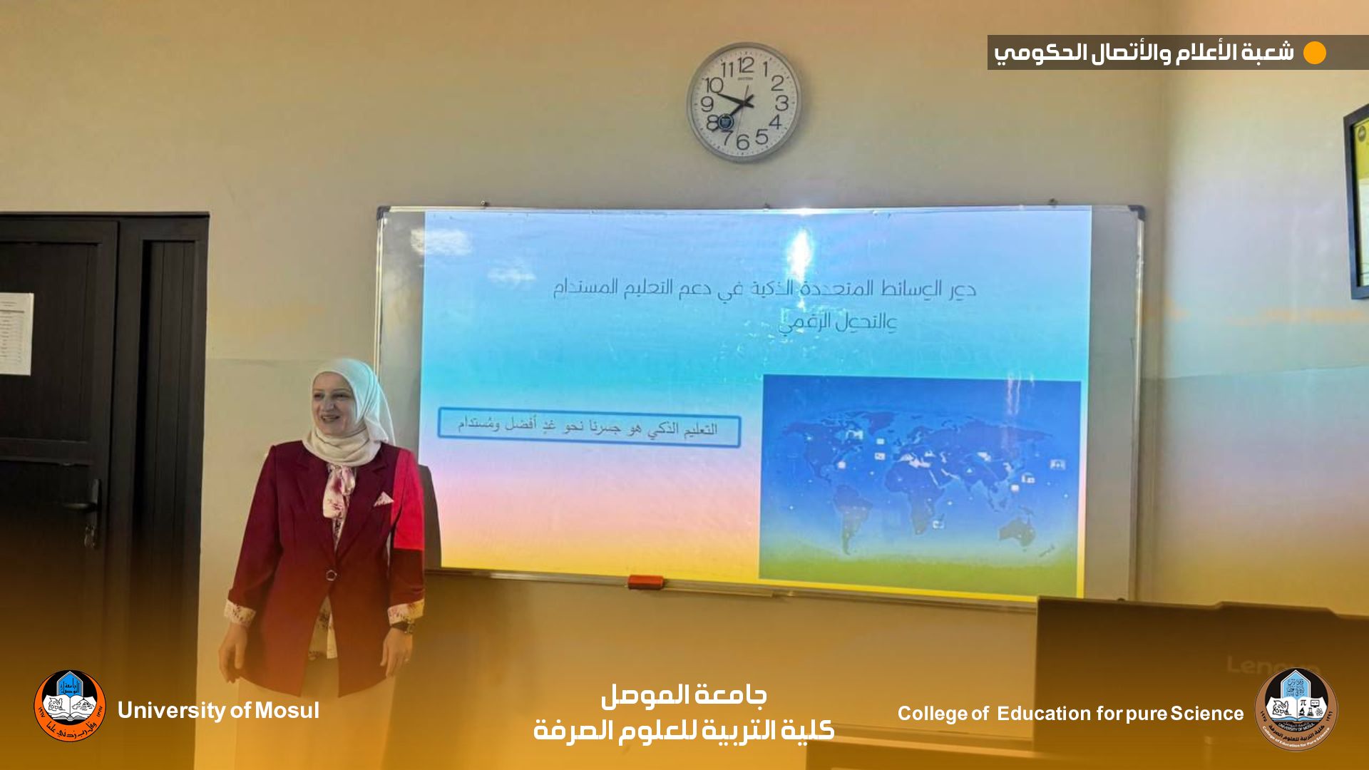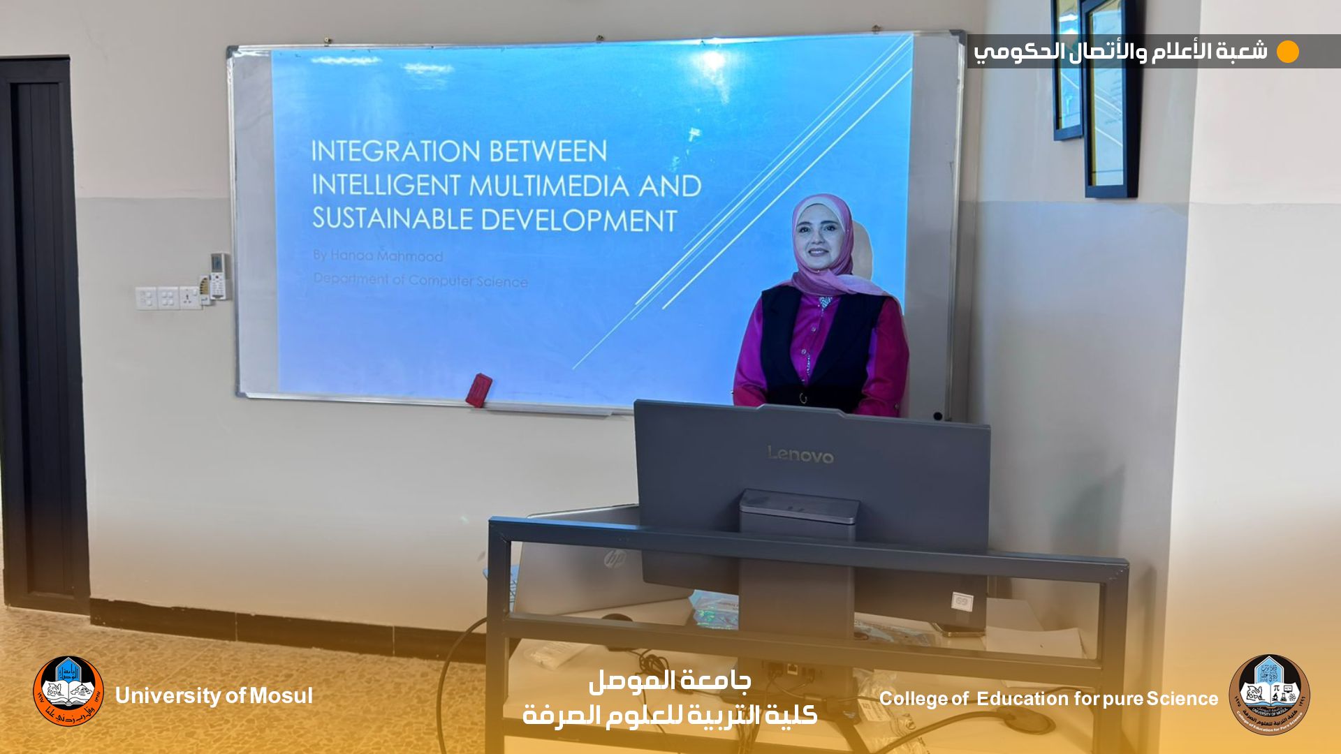 برعاية السيد رئيس جامعة الموصل الأستاذ الدكتور وحيد محمود الإبراهيمي المحترم، وبإشراف السيد عميد كلية التربية للعلوم الصرفة الأستاذ الدكتور جاسم فتحي علي المحترم، أقام قسم علوم الحاسوب في كلية التربية للعلوم الصرفة ومن ضمن نشاطات وحدة التعليم المستمر دورة علمية بعنوان “الوسائط المتعددة الذكية وتطبيقاتها الرقمية كأداة لتحقيق أهداف التنمية المستدامة” وذلك للفترة من ٢٦ – ٣٠ تشرين الأول ٢٠٢٥ حاضر فيها التدريسين المدرجة اسمائهم ادناه: