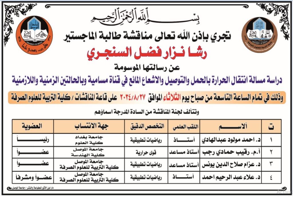 تتقدم عمادة كلية التربية للعلوم الصرفة متمثلة بعميدها الاستاذ الدكتور قيس اسماعيل ابراهيم بأحر التعازي والمواساة الى الشعب العراقي والأمة الإسلامية كافة بذكرى أربعينية استشهاد سيد شباب اهل الجنة الإمام الحسين عليه السلام فعظم الله لنا ولكم الاجر والثواب وجعلنا وإياكم من السائرين على نهجه والفائزين بمعرفته ونصرته.